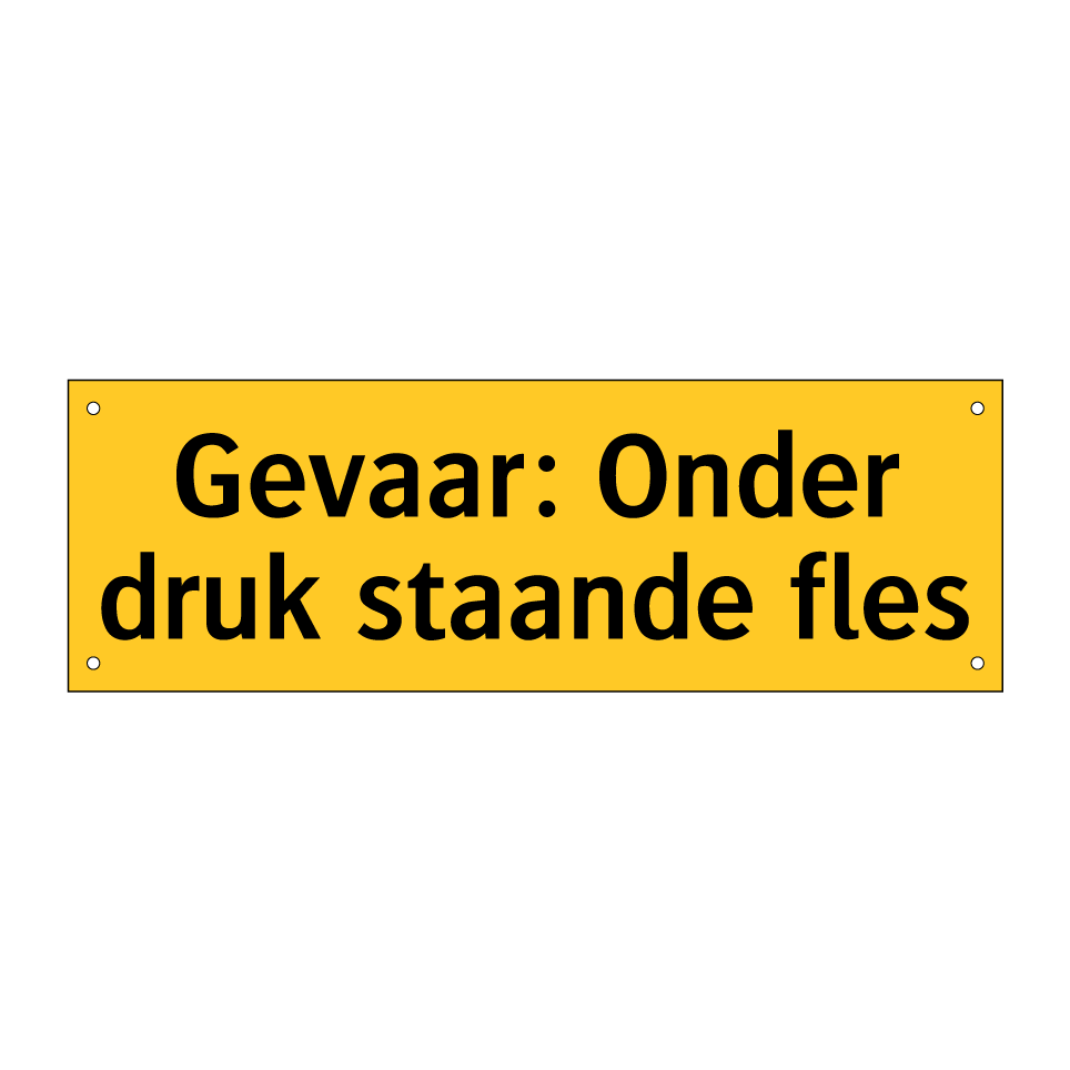 Waarschuwingsbord met de tekst Gevaar: Onder druk staande fles