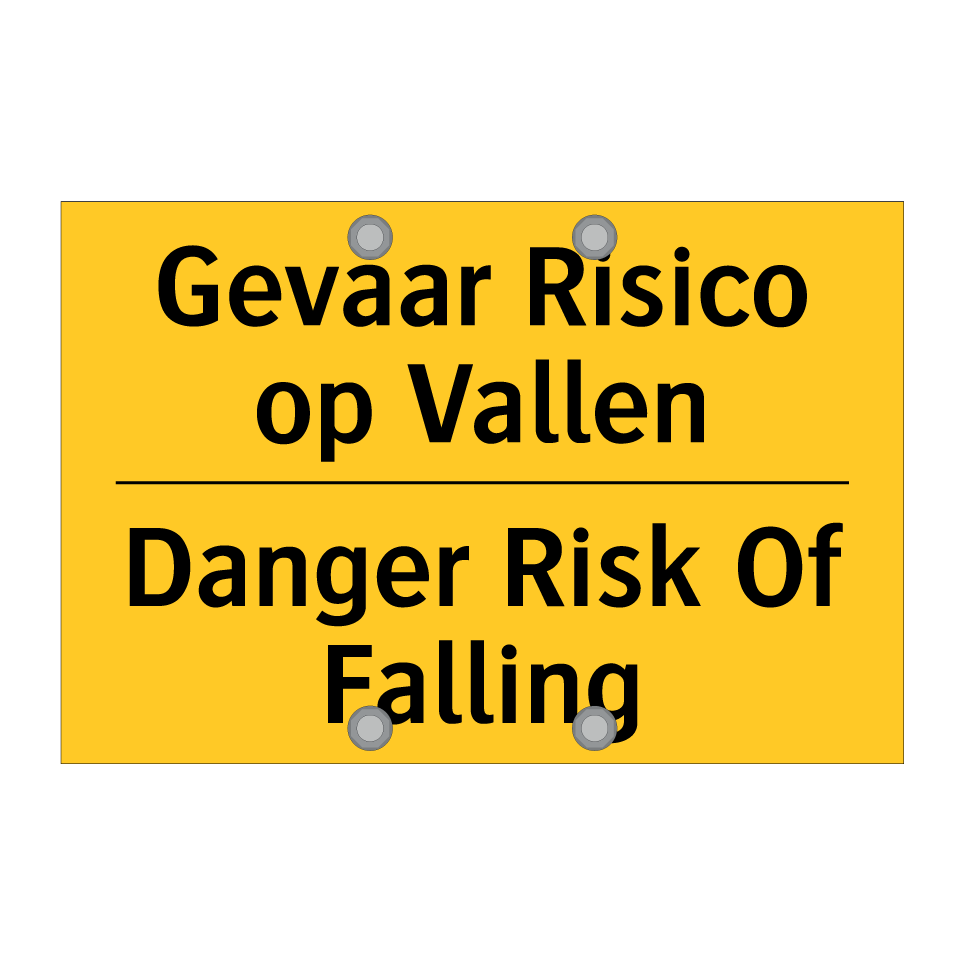 Waarschuwingsbord met de tekst Gevaar Risico op Vallen / Danger Risk Of Falling
