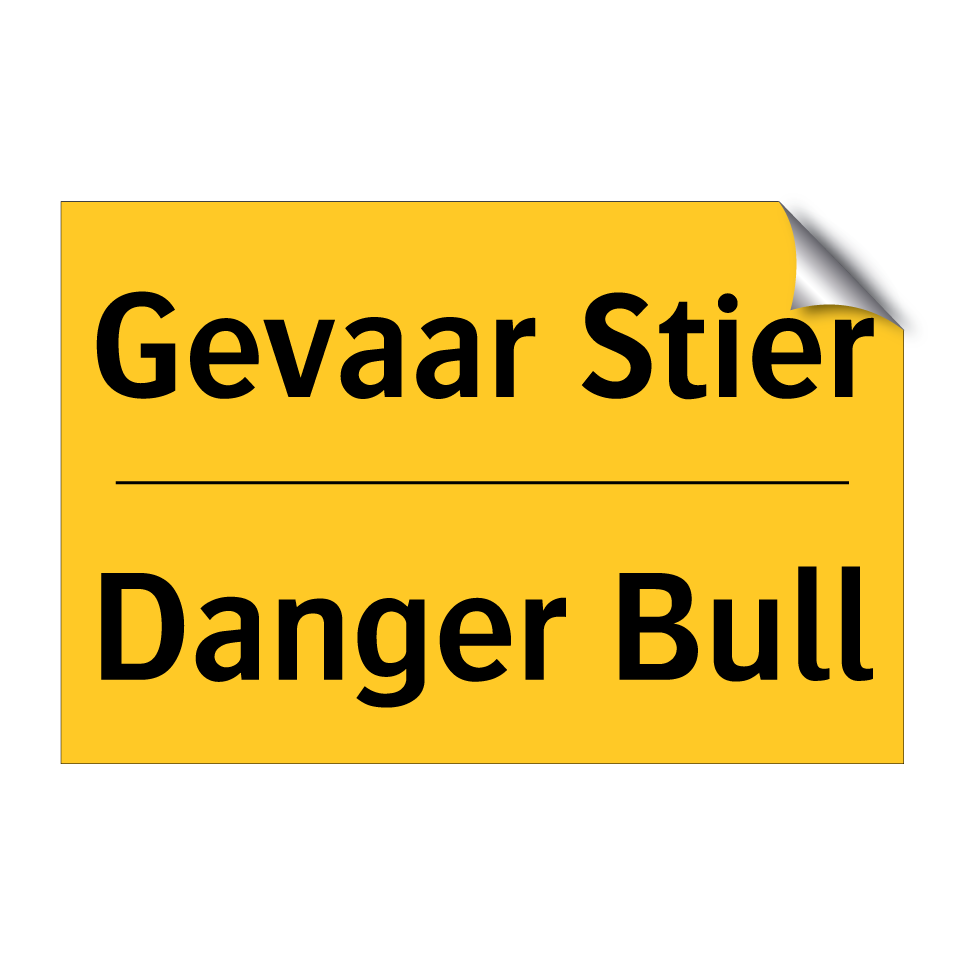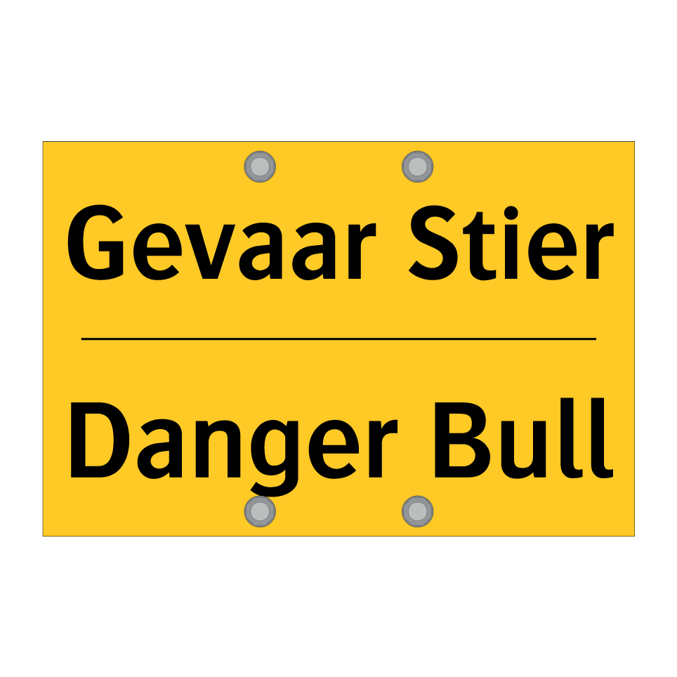 Waarschuwingsbord met de tekst Gevaar Stier / Danger Bull