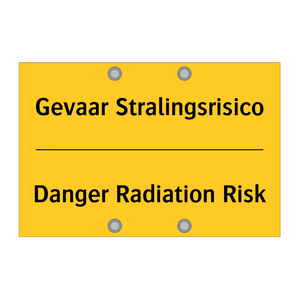 Waarschuwingsbord met de tekst Gevaar Stralingsrisico / Danger Radiation Risk