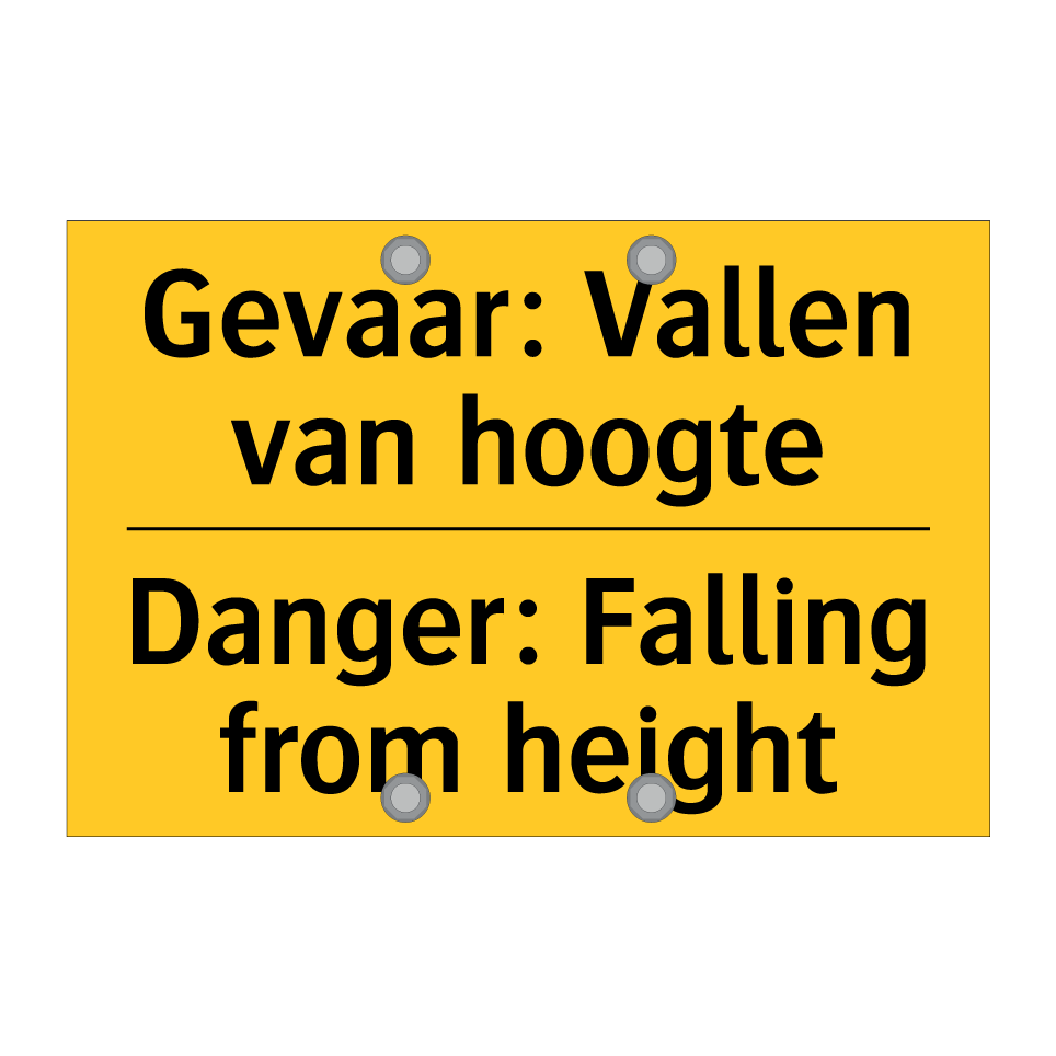 Waarschuwingsbord met de tekst Gevaar: Vallen van hoogte / Danger: Falling from height