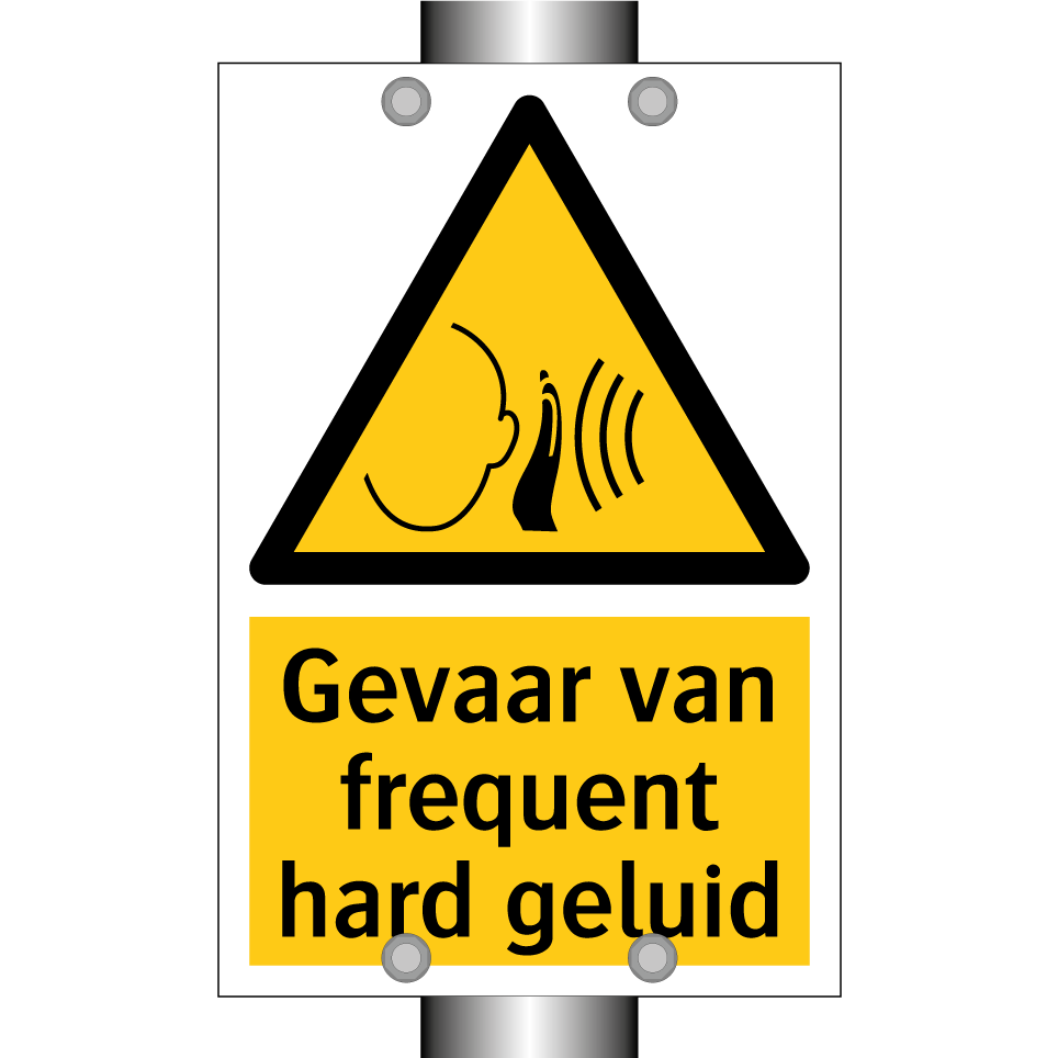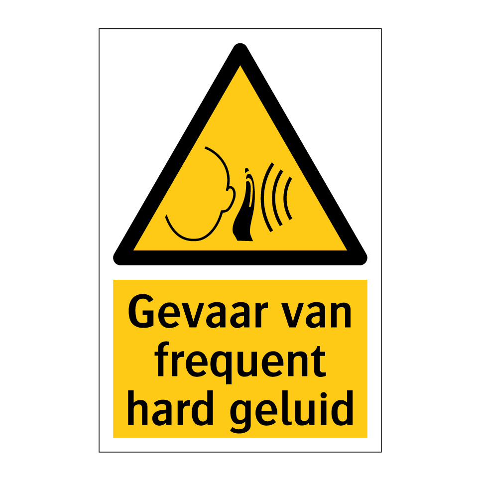 Waarschuwingsbord met de tekst Gevaar van frequent hard geluid