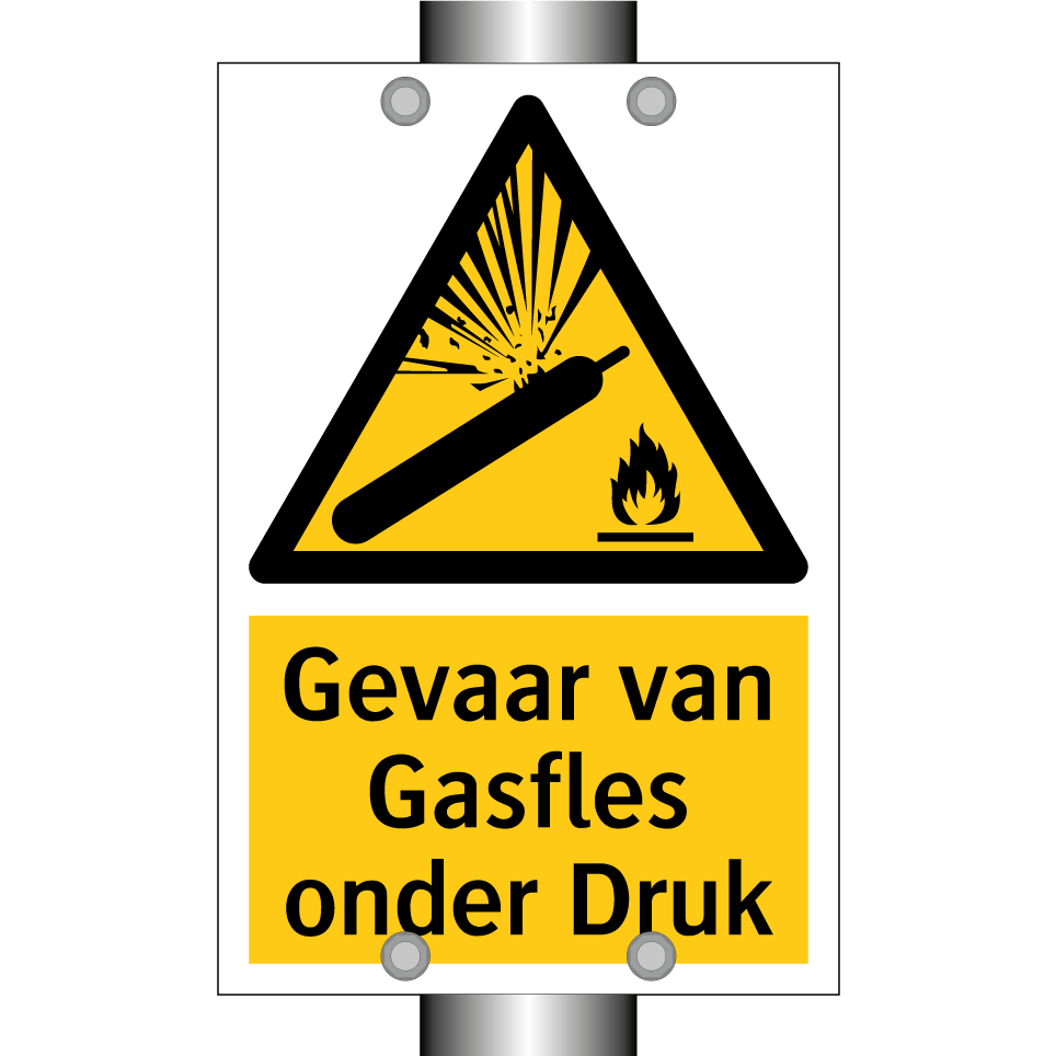 Waarschuwingsbord met de tekst Gevaar van Gasfles onder Druk
