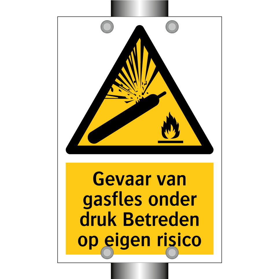 Sur les pages de catégorie ci-dessous, vous trouverez plus de produits similaires à Gevaar van gasfles onder druk Betreden op eigen risico. Cliquez ci-dessous pour découvrir plus de produits.