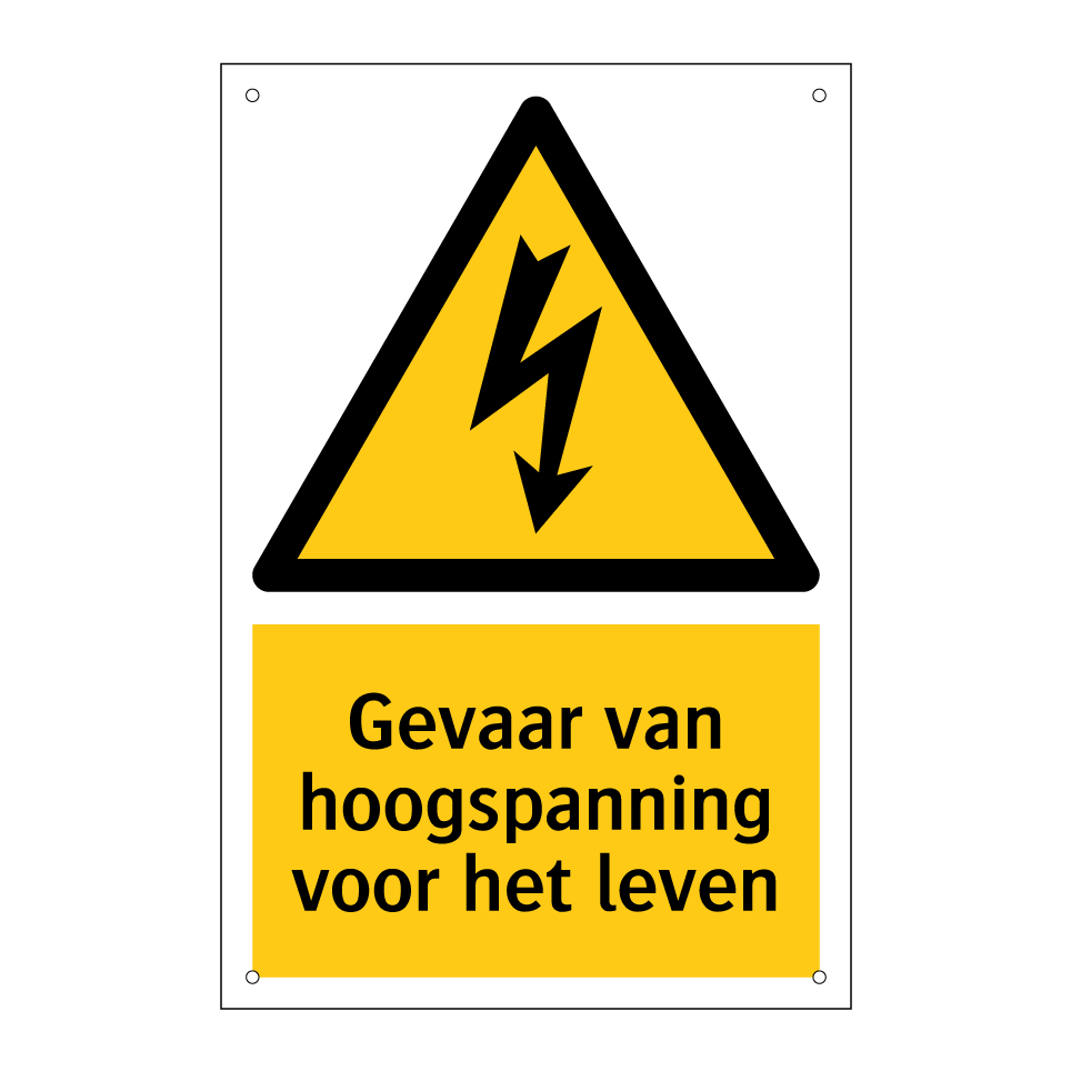 Waarschuwingsbord met de tekst Gevaar van hoogspanning voor het leven