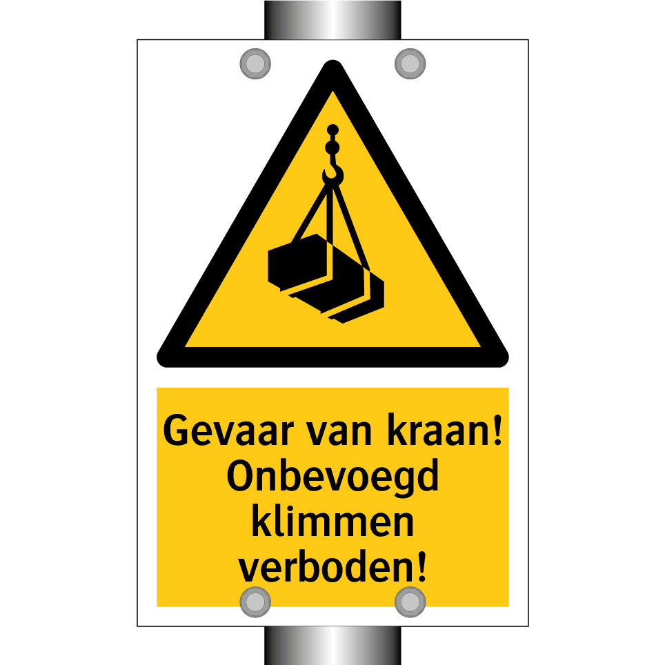 Gevaar van kraan! Onbevoegd klimmen verboden!