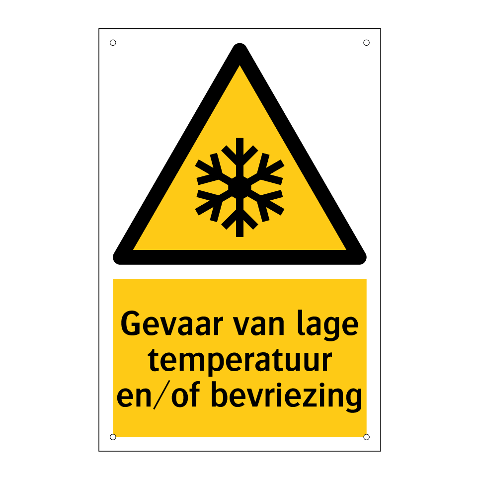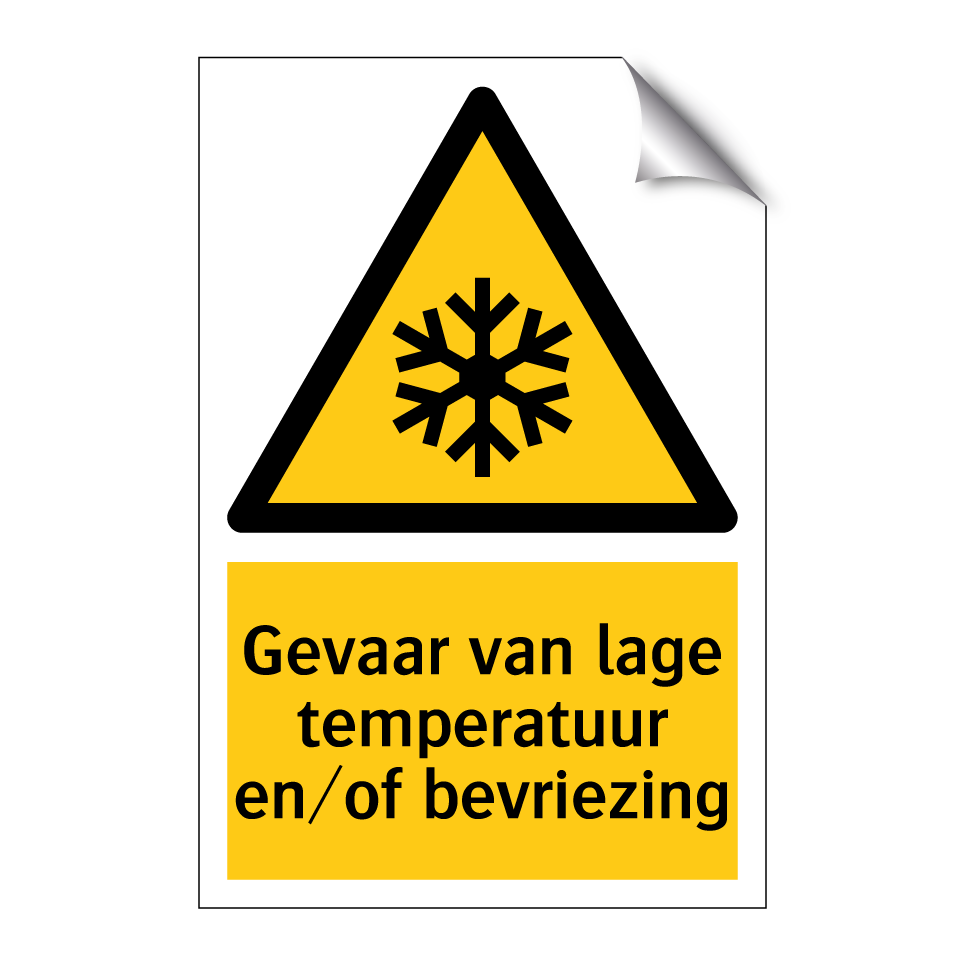 Waarschuwingsbord met de tekst Gevaar van lage temperatuur en/of bevriezing
