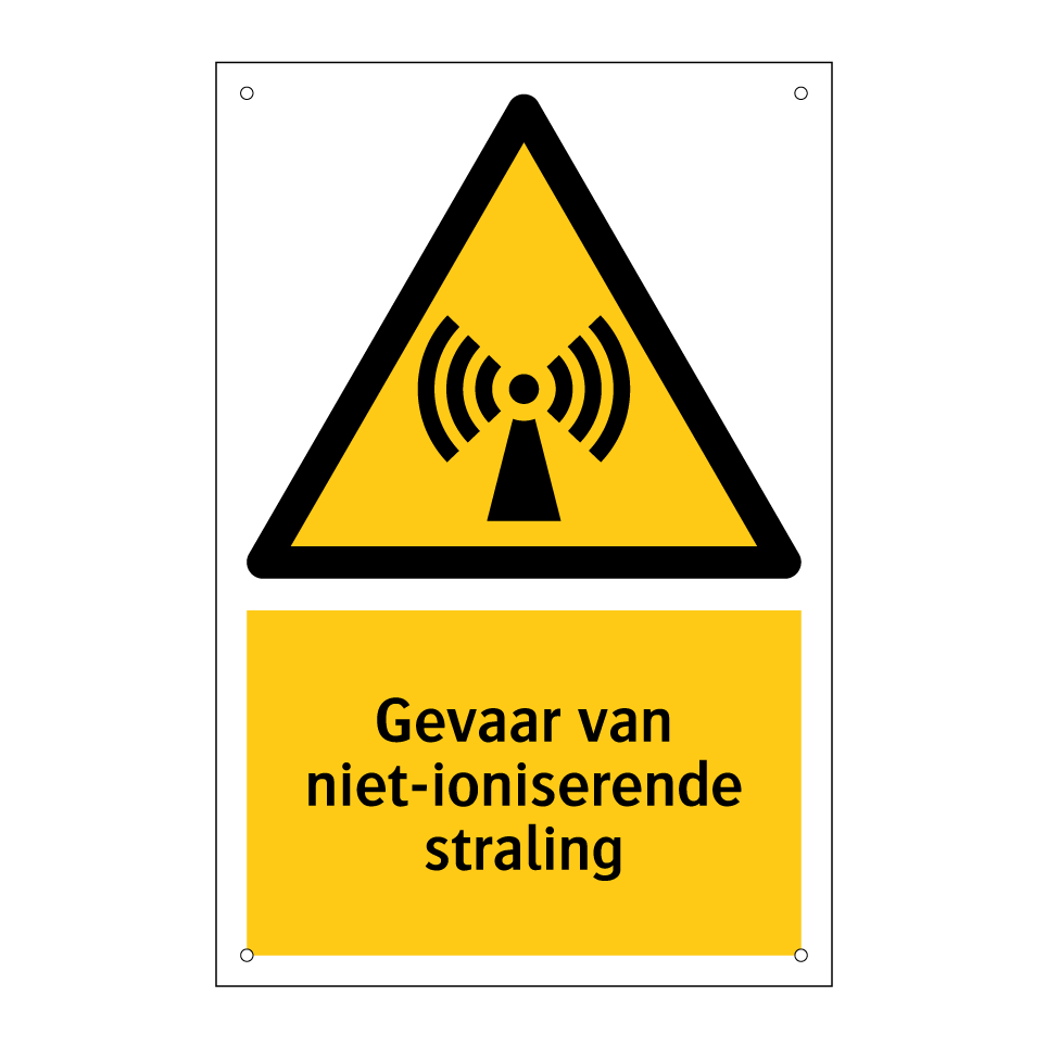 Waarschuwingsbord met de tekst Gevaar van niet-ioniserende straling