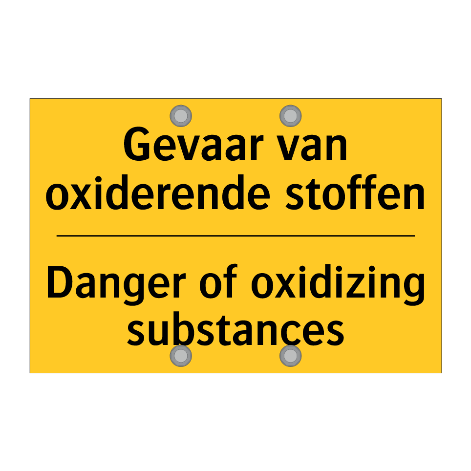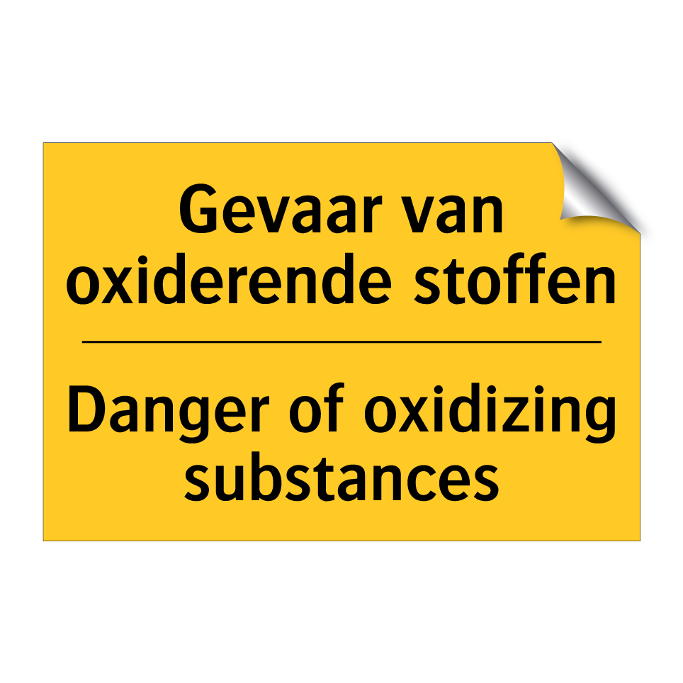 Waarschuwingsbord met de tekst Gevaar van oxiderende stoffen / Danger of oxidizing substances