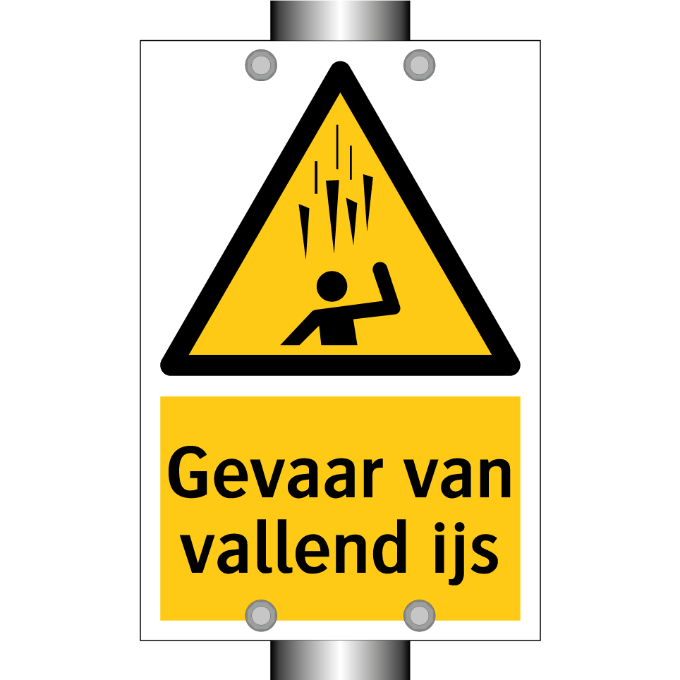 Waarschuwingsbord met de tekst Gevaar van vallend ijs