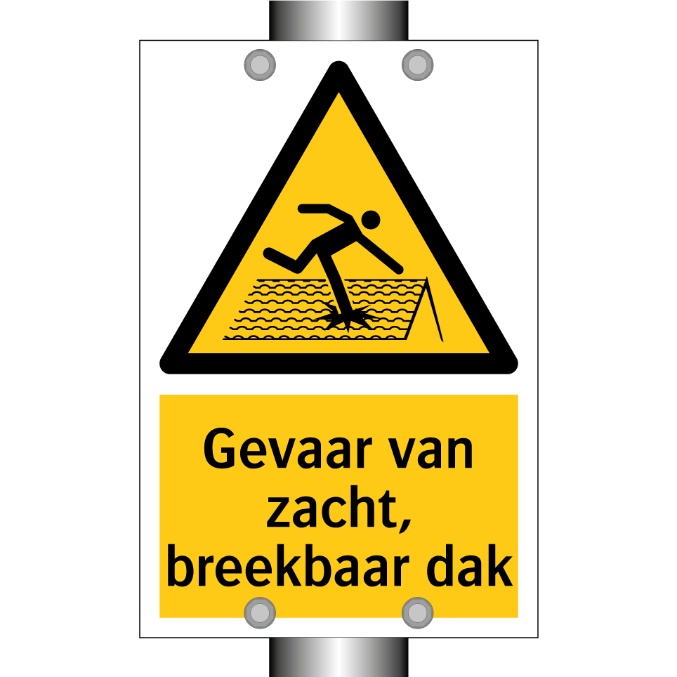 Waarschuwingsbord met de tekst Gevaar van zacht, breekbaar dak