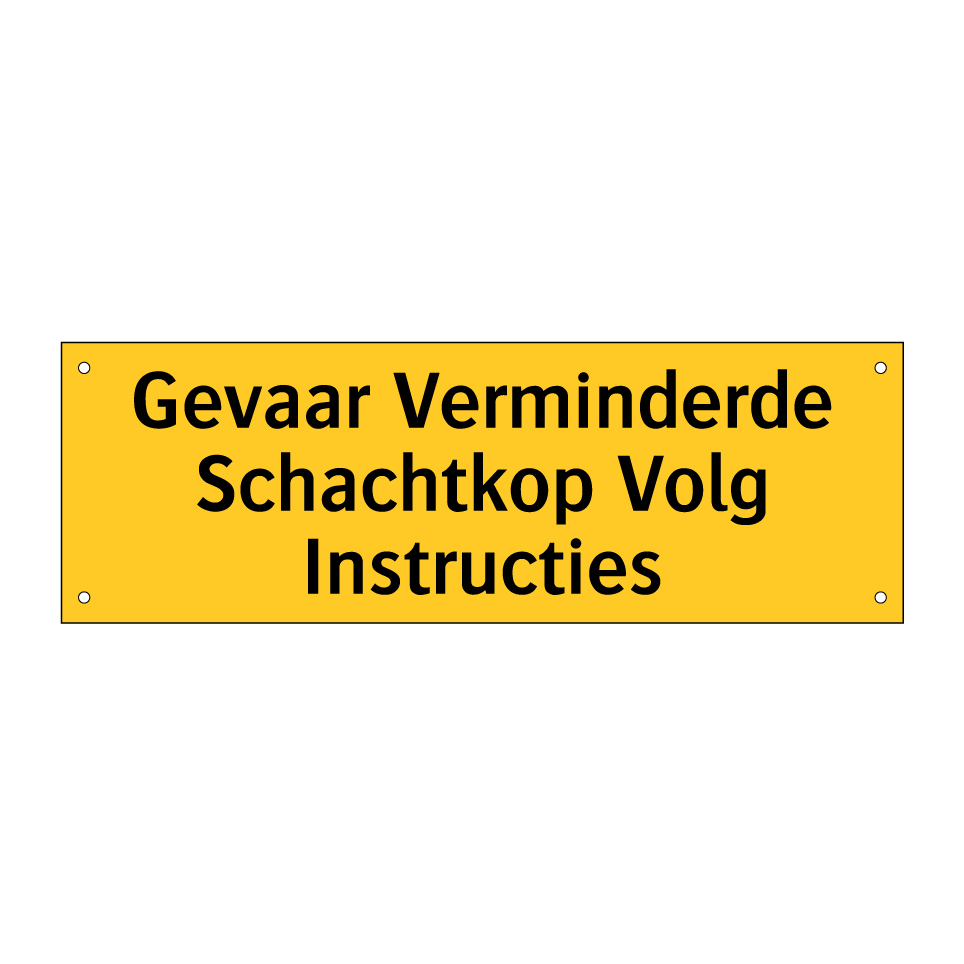 Waarschuwingsbord met de tekst Gevaar Verminderde Schachtkop Volg Instructies