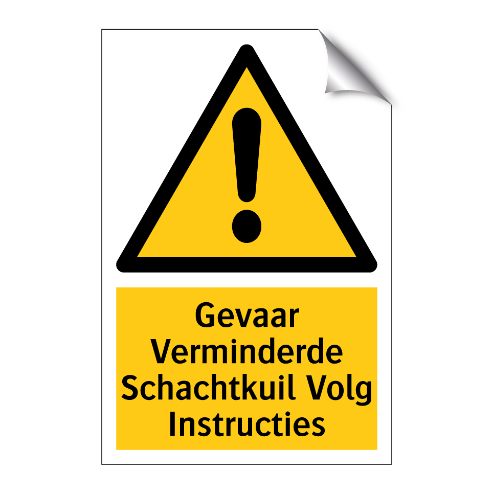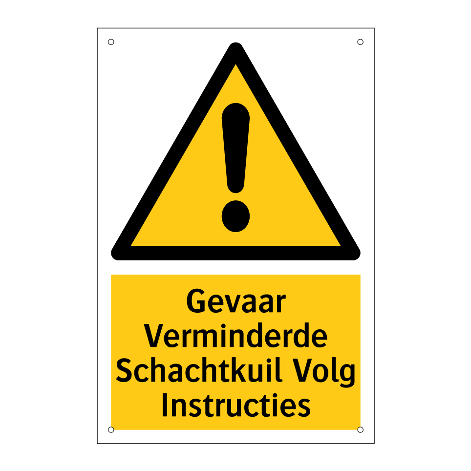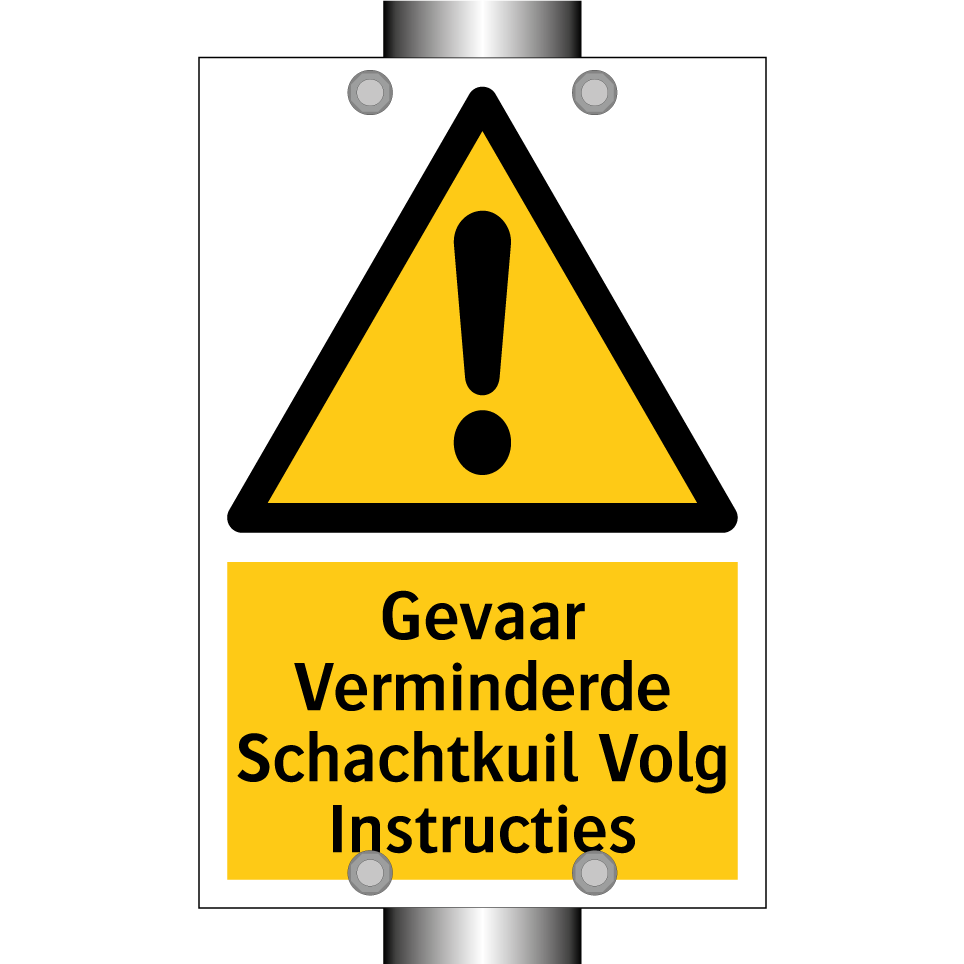Waarschuwingsbord met de tekst Gevaar Verminderde Schachtkuil Volg Instructies