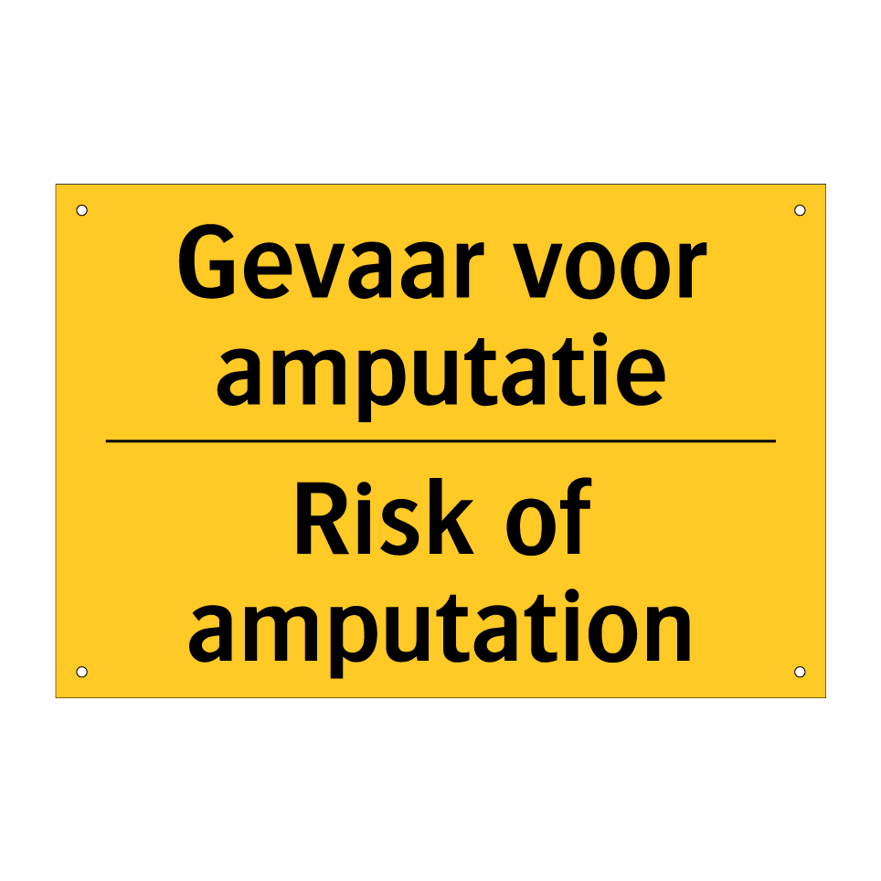 Waarschuwingsbord met de tekst Gevaar voor amputatie / Risk of amputation