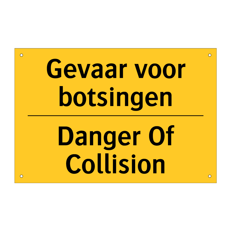 Waarschuwingsbord met de tekst Gevaar voor botsingen / Danger Of Collision