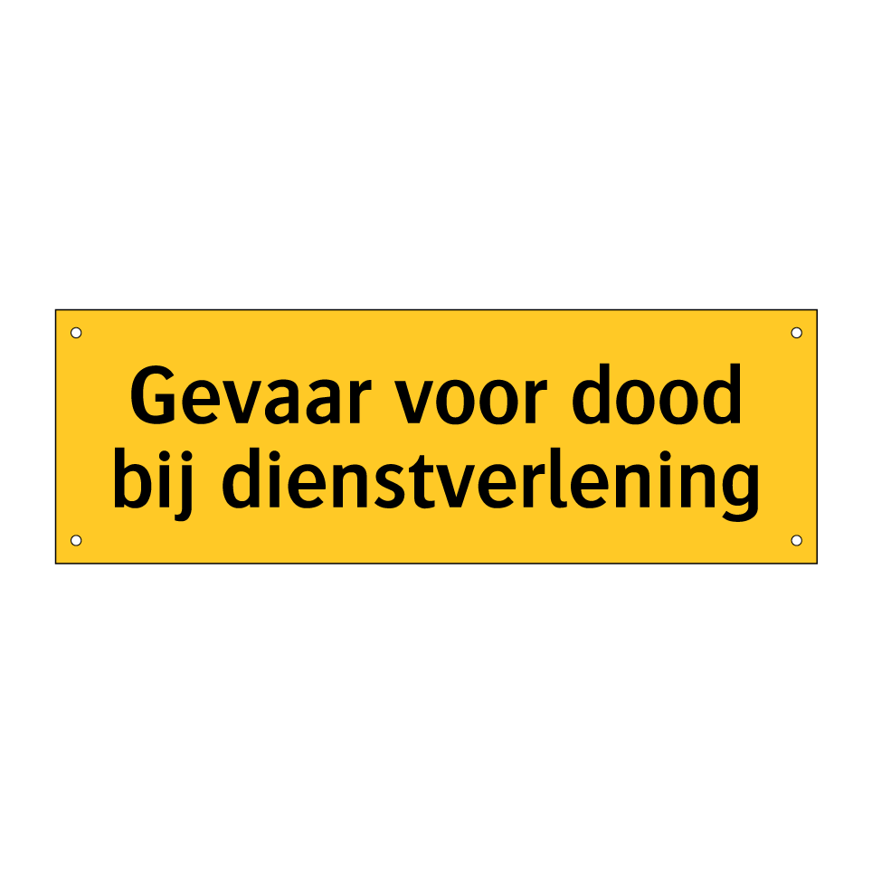 Waarschuwingsbord met de tekst Gevaar voor dood bij dienstverlening