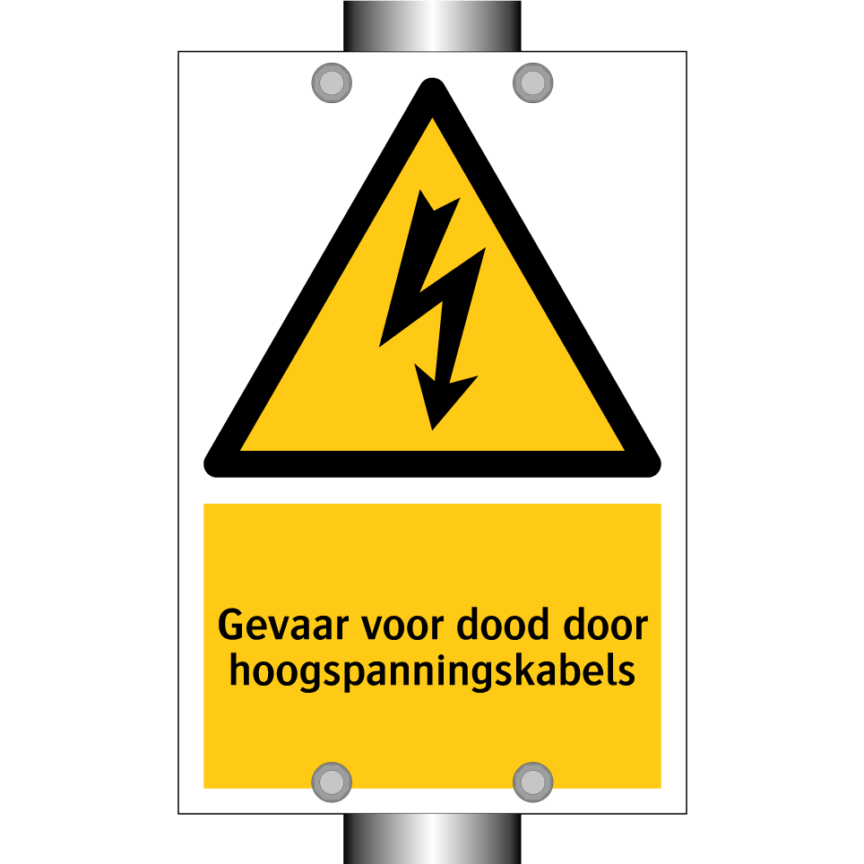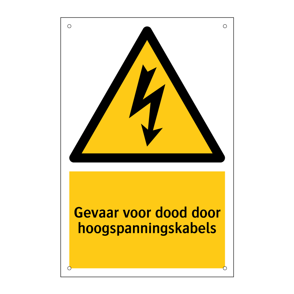 Waarschuwingsbord met de tekst Gevaar voor dood door hoogspanningskabels