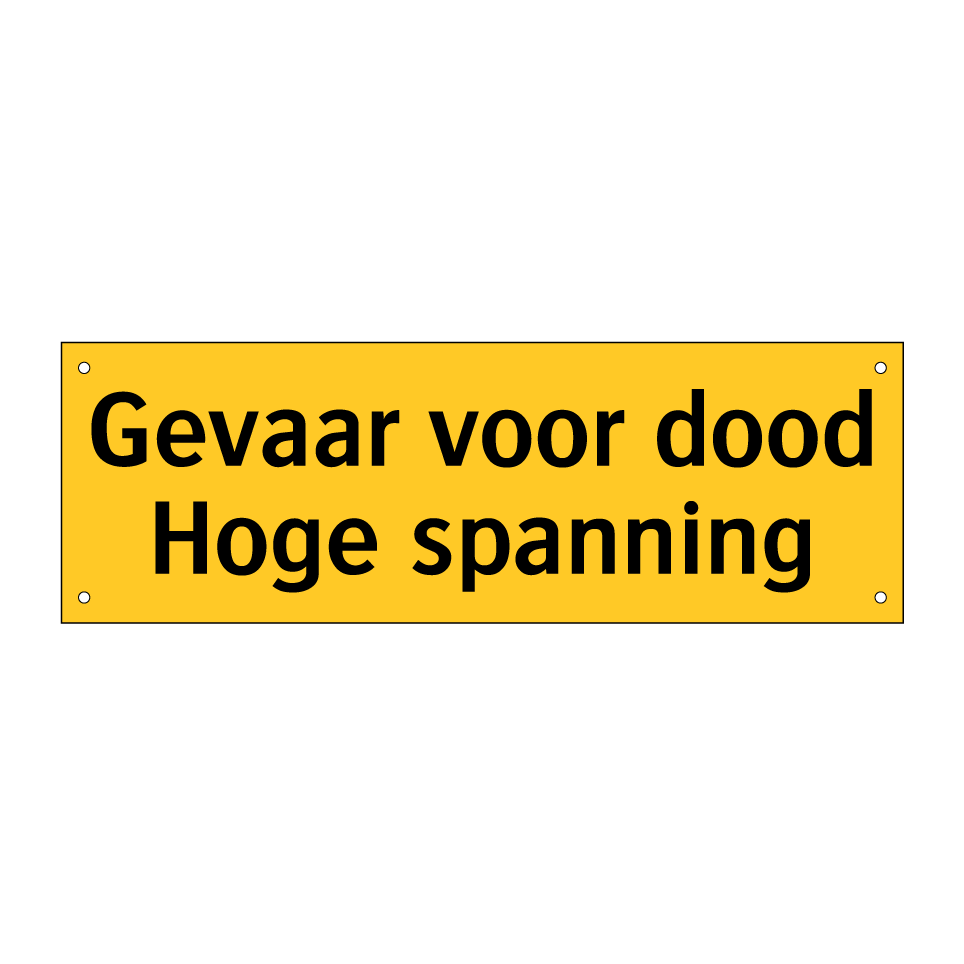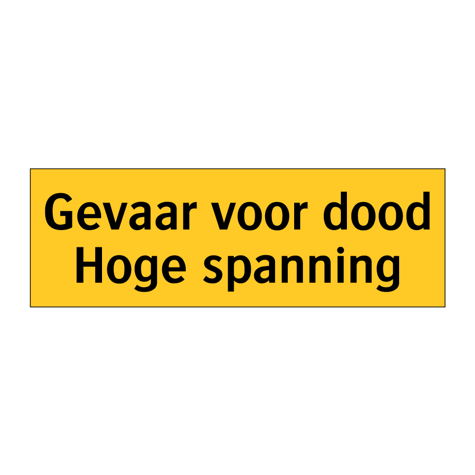 Waarschuwingsbord met de tekst Gevaar voor dood Hoge spanning