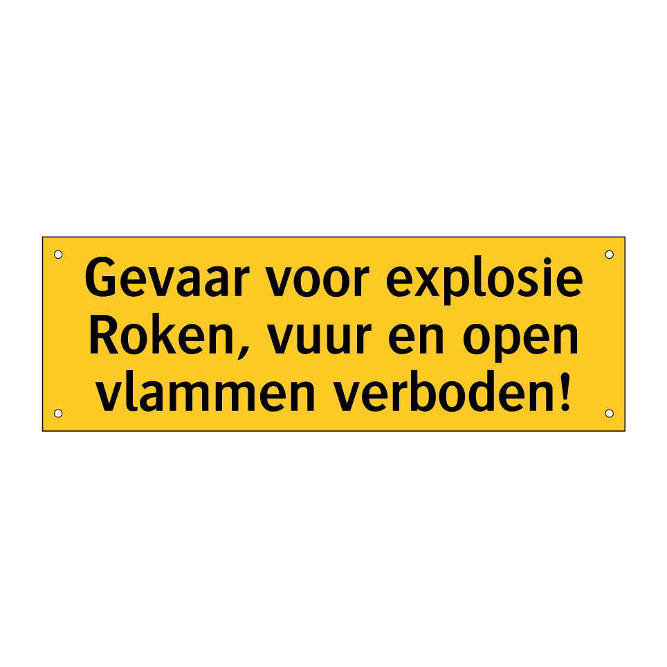 Waarschuwingsbord met de tekst Gevaar voor explosie Roken, vuur en open vlammen verboden!