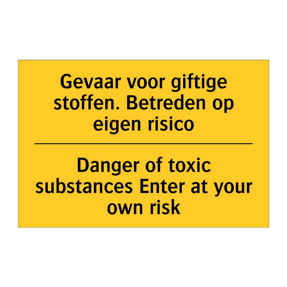 Waarschuwingsbord met de tekst Gevaar voor giftige stoffen. Betreden op eigen risico / Danger of toxic substances Enter at your own risk