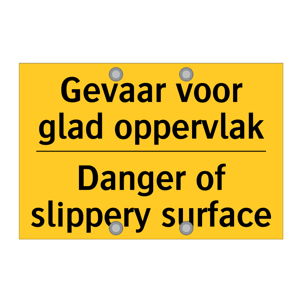 Waarschuwingsbord met de tekst Gevaar voor glad oppervlak / Danger of slippery surface