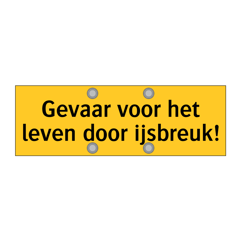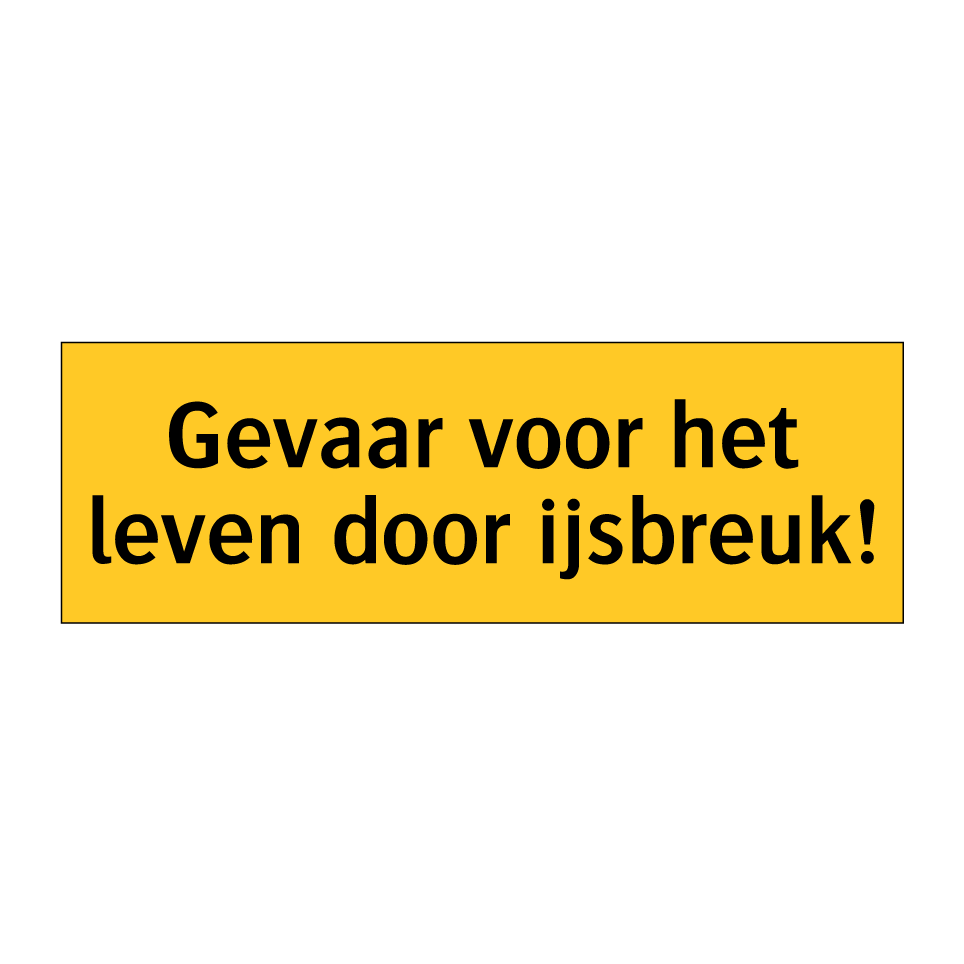 Waarschuwingsbord met de tekst Gevaar voor het leven door ijsbreuk!