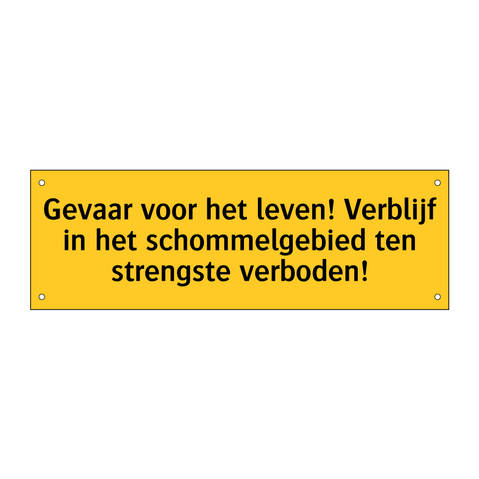 Deze waarschuwingsbord is essentieel voor het waarborgen van de veiligheid in risicovolle gebieden. Het bord waarschuwt voor levensgevaar en verbiedt strikt het verblijf in het schommelgebied. Ideaal voor gebruik op bouwplaatsen, industriële zones, en andere locaties waar gevaarlijke omstandigheden kunnen voorkomen. Door de opvallende gele achtergrond en zwarte tekst trekt het direct de aandacht en zorgt het voor een duidelijke communicatie van de veiligheidsvoorschriften. Plaats dit waarschuwingsbord op goed zichtbare plekken zoals ingangen, hekken, en nabij gevaarlijke machines om ongelukken te voorkomen en de veiligheid te waarborgen.