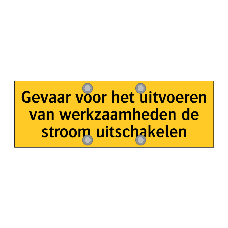 Waarschuwingsbord met de tekst Gevaar voor het uitvoeren van werkzaamheden de stroom uitschakelen