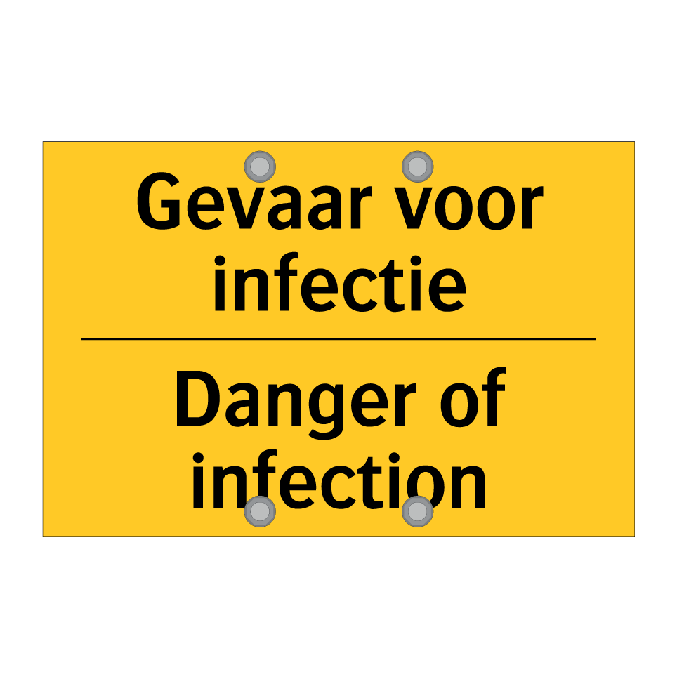 Waarschuwingsbord met de tekst Gevaar voor infectie / Danger of infection