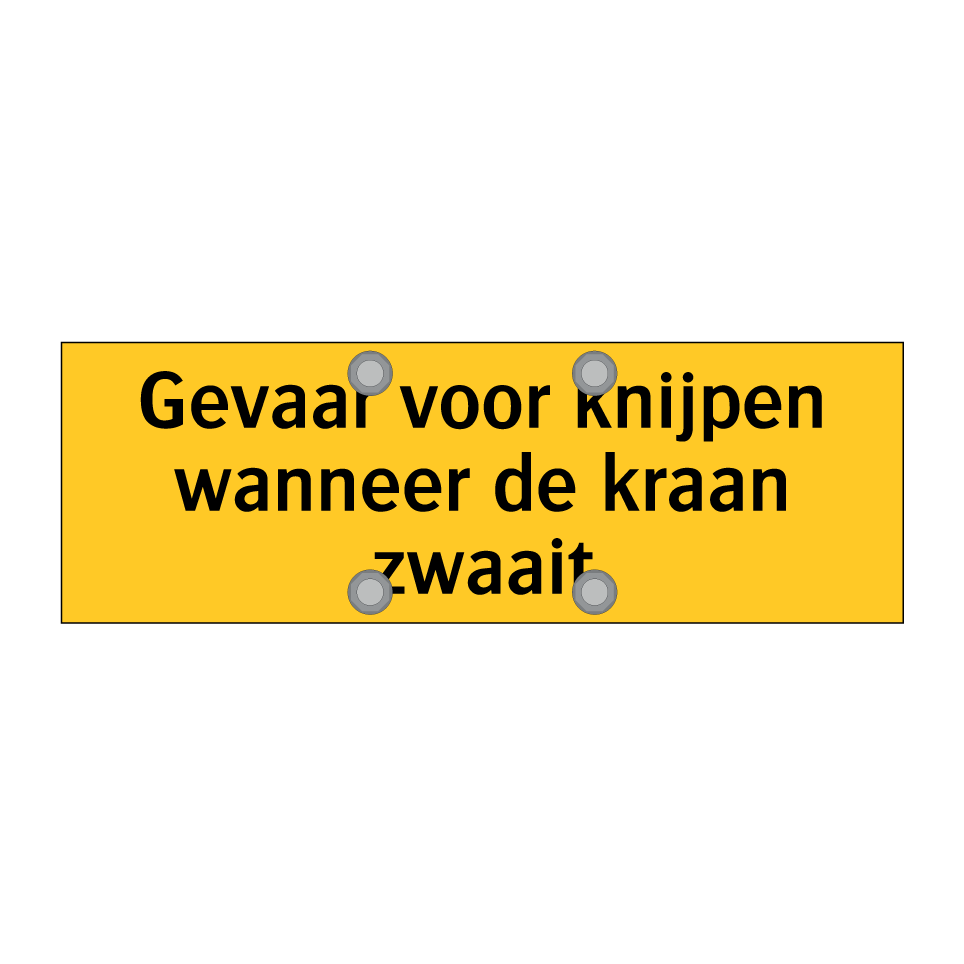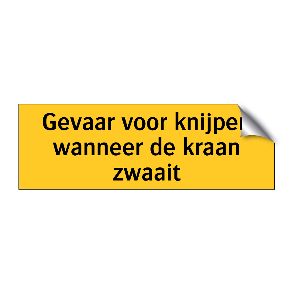 Waarschuwingsbord met de tekst Gevaar voor knijpen wanneer de kraan zwaait