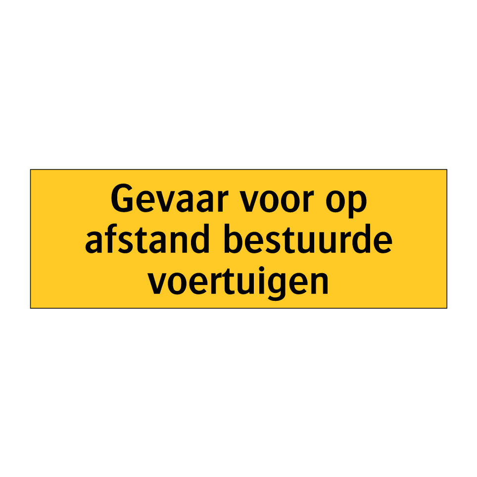 Waarschuwingsbord met de tekst Gevaar voor op afstand bestuurde voertuigen