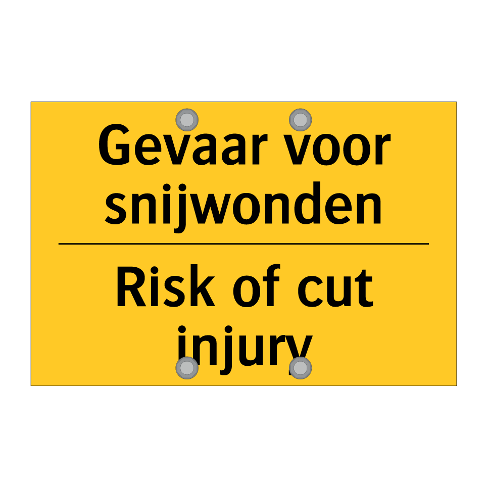 Waarschuwingsbord met de tekst Gevaar voor snijwonden / Risk of cut injury