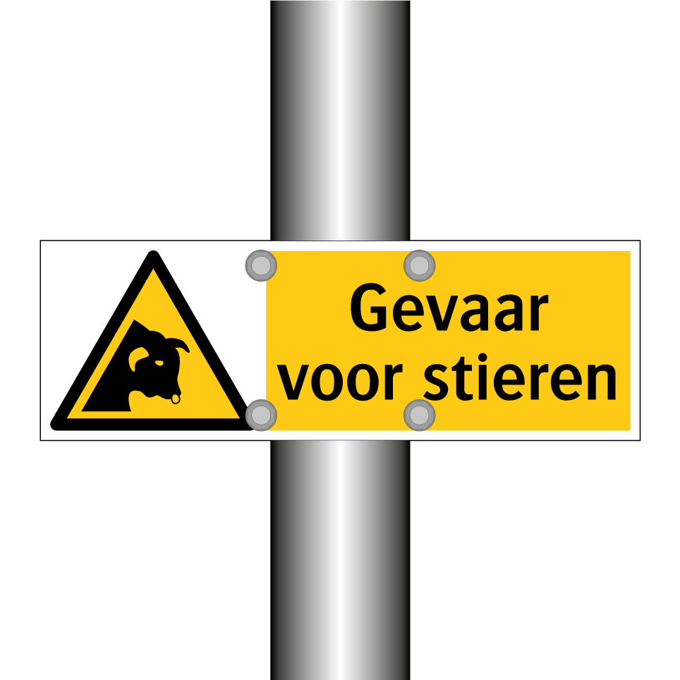 Waarschuwingsbord met de tekst Gevaar voor stieren