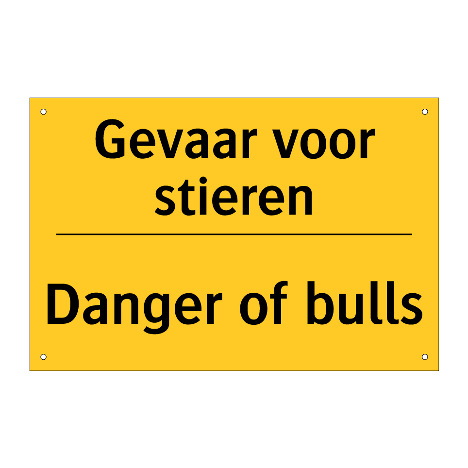 Waarschuwingsbord met de tekst Gevaar voor stieren / Danger of bulls