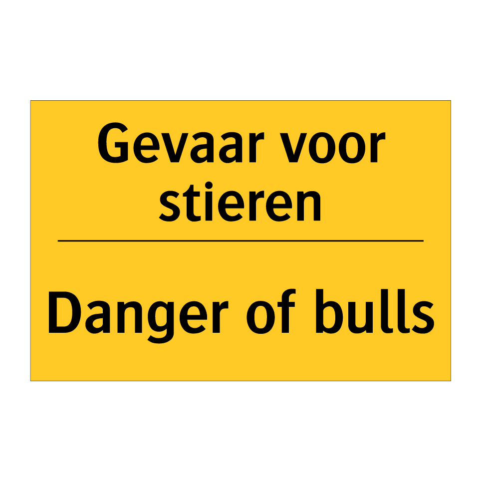 Dit waarschuwingsbord met gele achtergrond en zwarte tekst is ideaal voor gebruik op locaties waar stieren aanwezig zijn. De tweetalige tekst in zowel Nederlands als Engels zorgt ervoor dat zowel lokale bewoners als internationale bezoekers de waarschuwing begrijpen. dit bordje is perfect voor boerderijen, weilanden, en andere gebieden waar vee wordt gehouden. Door de duidelijke en opvallende kleuren trekt het direct de aandacht en helpt het ongelukken te voorkomen. Plaats dit waarschuwingsbord bij ingangen, hekken of andere strategische punten om de veiligheid van iedereen te waarborgen.