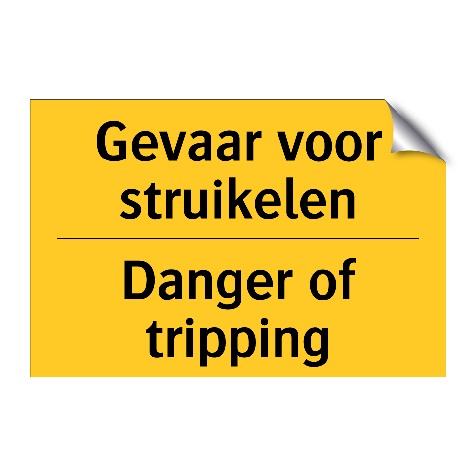 Waarschuwingsbord met de tekst Gevaar voor struikelen / Danger of tripping