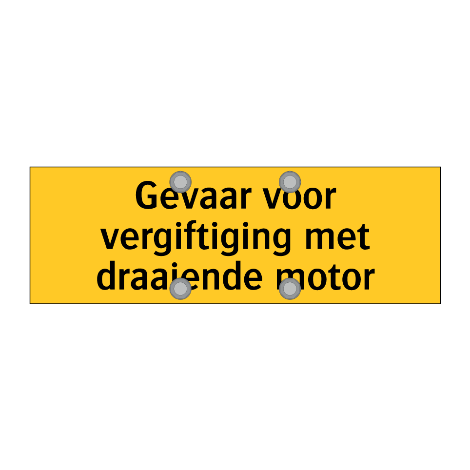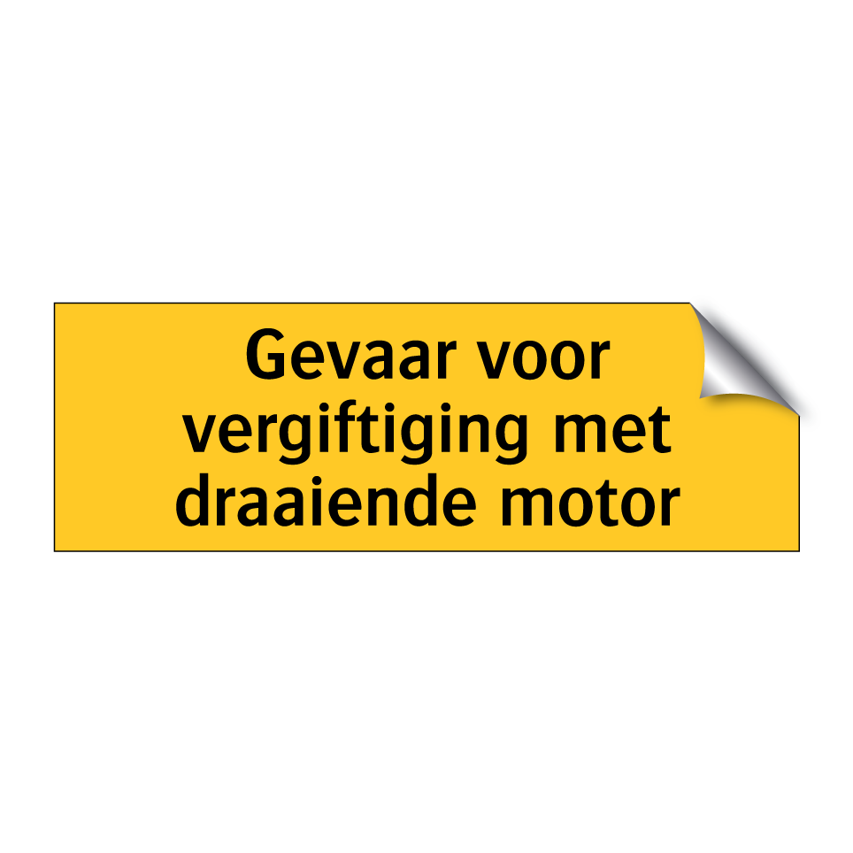 Waarschuwingsbord met de tekst Gevaar voor vergiftiging met draaiende motor
