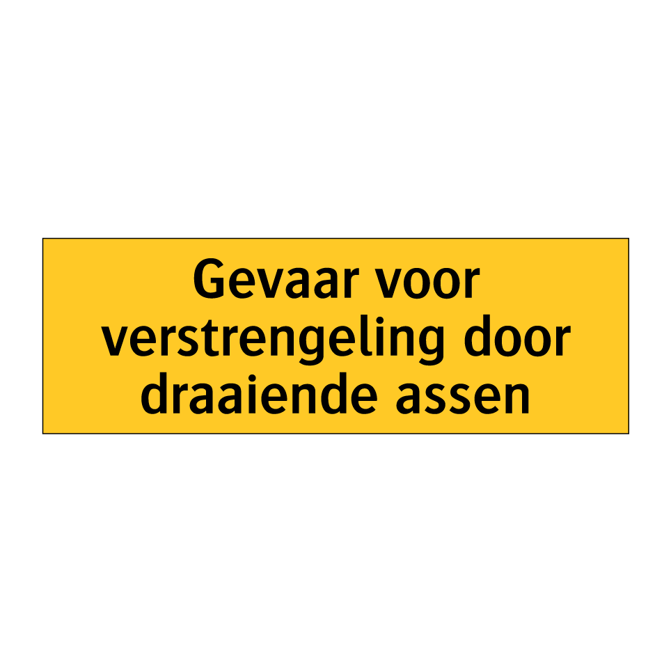 Deze waarschuwingsbord is essentieel voor het waarborgen van de veiligheid in omgevingen met draaiende assen. Plaats deze bord op strategische locaties zoals fabrieken, werkplaatsen en industriële installaties om personeel te waarschuwen voor het gevaar van verstrengeling. De opvallende gele achtergrond en zwarte tekst zorgen ervoor dat de waarschuwing direct opvalt en serieus wordt genomen. Door deze waarschuwingsbord te gebruiken, kunt u ongelukken voorkomen en een veilige werkomgeving bevorderen. Ideaal voor gebruik in mechanische ruimtes, productielijnen en andere gebieden waar bewegende onderdelen aanwezig zijn. Zorg voor de veiligheid van uw team met deze duidelijke en effectieve waarschuwing.