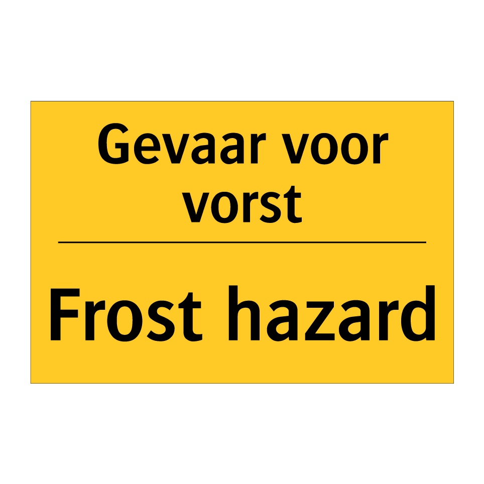 Waarschuwingsbord met de tekst Gevaar voor vorst / Frost hazard