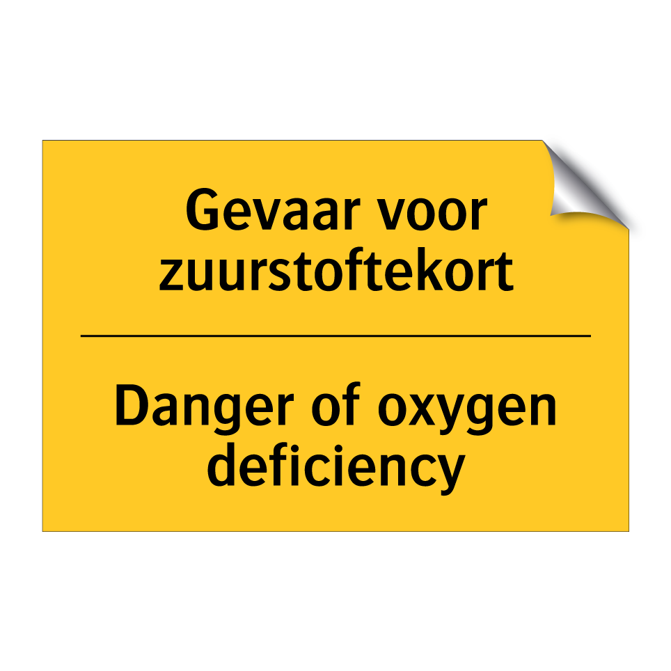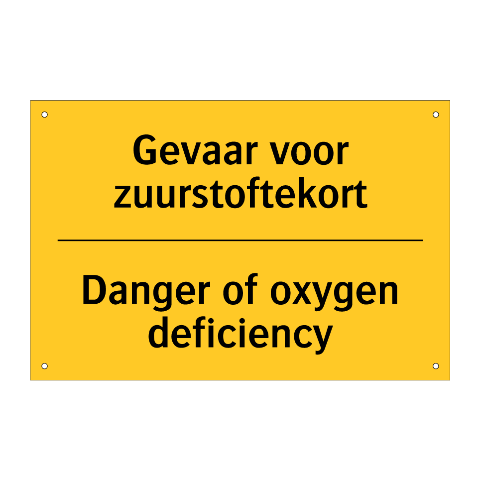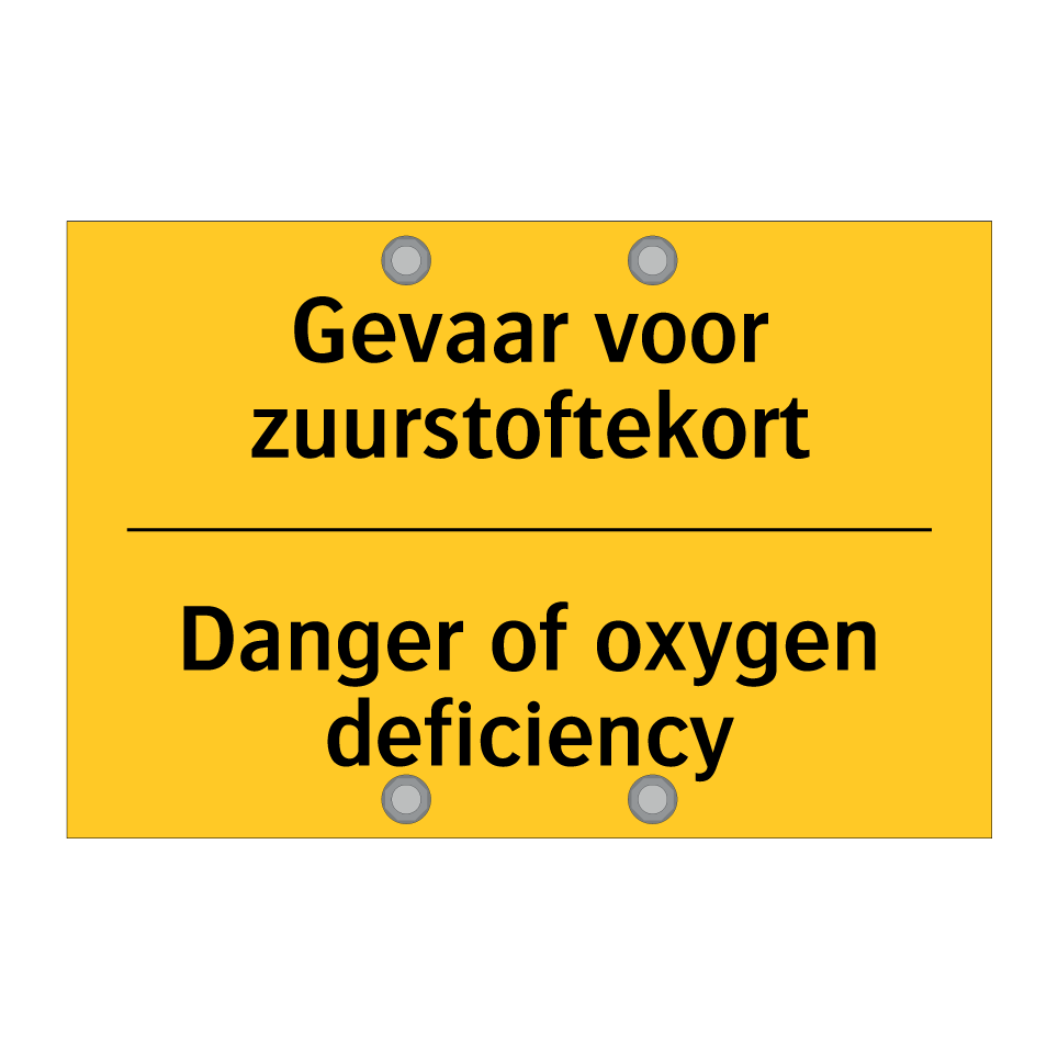 Waarschuwingsbord met de tekst Gevaar voor zuurstoftekort / Danger of oxygen deficiency