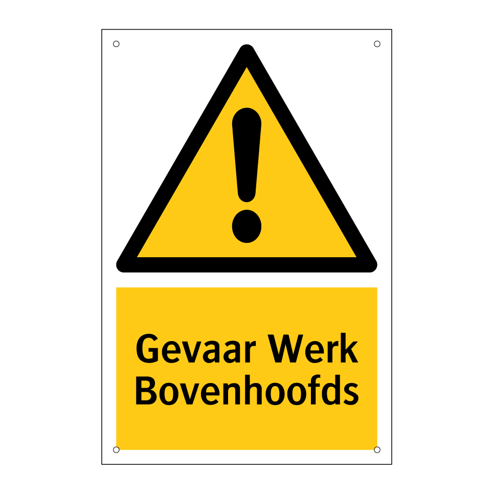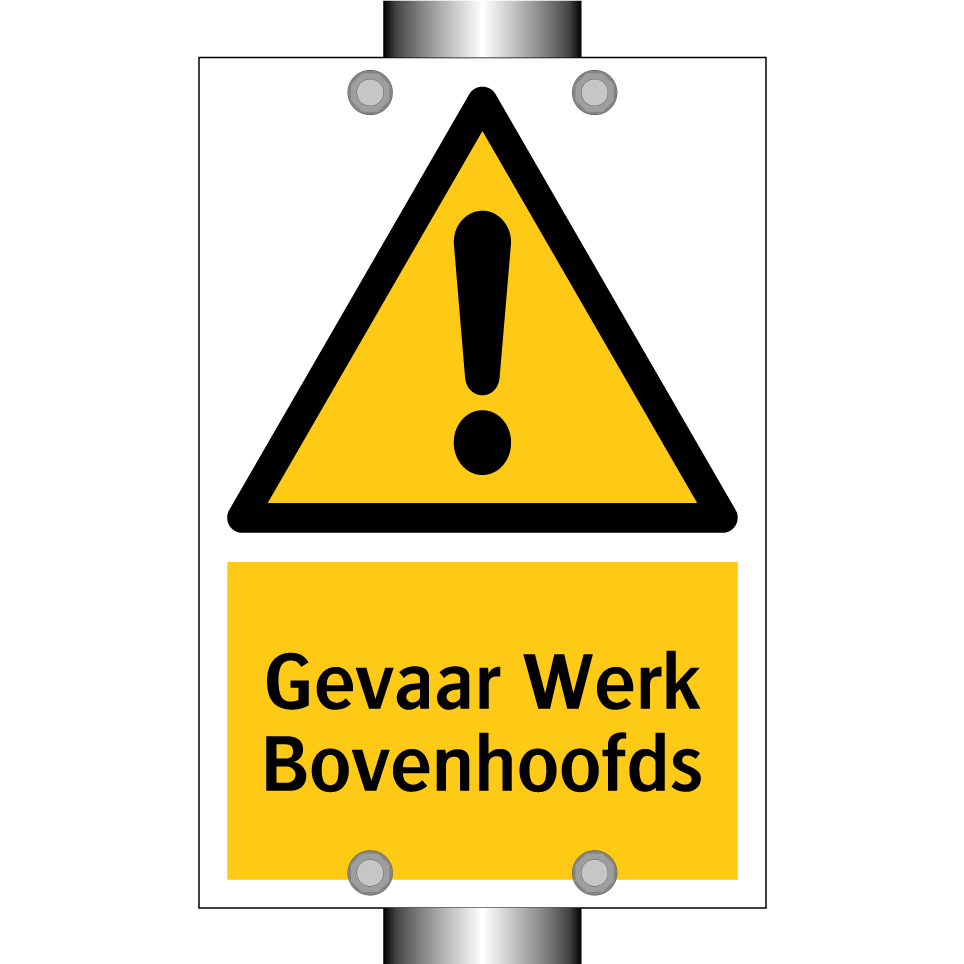 Waarschuwingsbord met de tekst Gevaar Werk Bovenhoofds