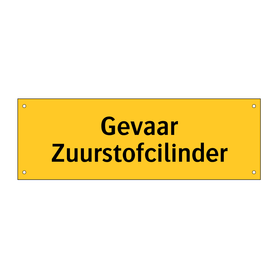 Waarschuwingsbord met de tekst Gevaar Zuurstofcilinder
