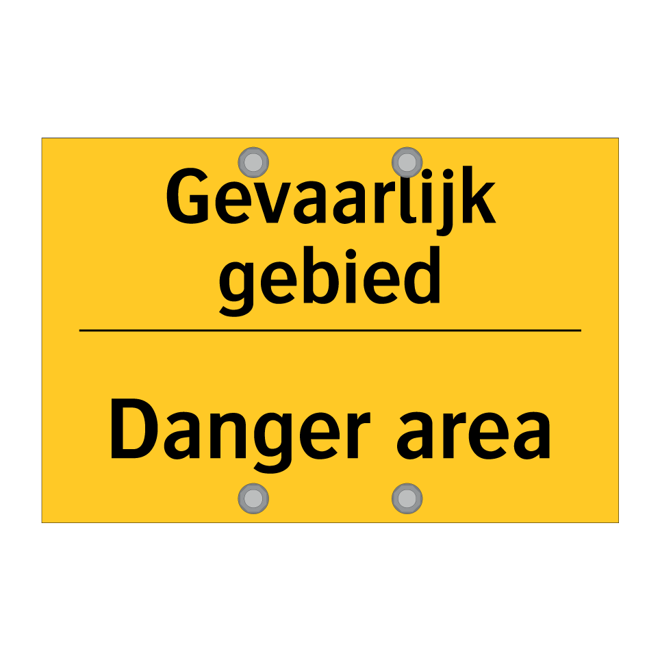 Dit waarschuwingsbord met gele achtergrond en zwarte tekst is ideaal voor het markeren van gevaarlijke gebieden. De tweetalige tekst in zowel Nederlands als Engels zorgt ervoor dat de boodschap duidelijk is voor een breder publiek, wat de veiligheid verhoogt. dit bordje is perfect voor gebruik op bouwplaatsen, industriële zones, en andere risicovolle locaties waar extra voorzichtigheid geboden is. Door de opvallende kleuren en duidelijke tekst trekt het direct de aandacht van voorbijgangers en werknemers, waardoor ongelukken kunnen worden voorkomen. Plaats dit waarschuwingsbord op goed zichtbare plekken zoals ingangen, hekken, en muren om iedereen te waarschuwen voor potentieel gevaar.