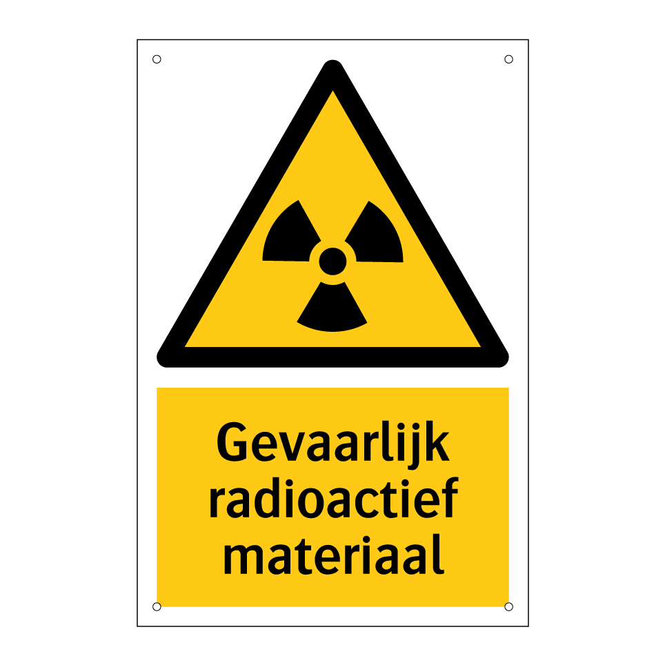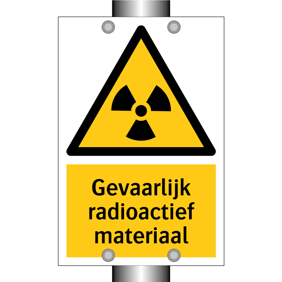 Waarschuwingsbord met de tekst Gevaarlijk radioactief materiaal