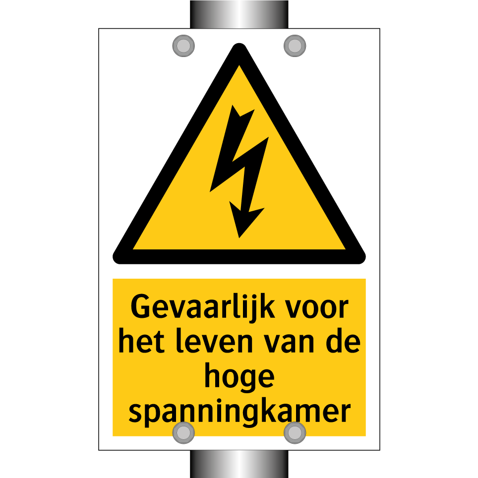 Waarschuwingsbord met de tekst Gevaarlijk voor het leven van de hoge spanningkamer