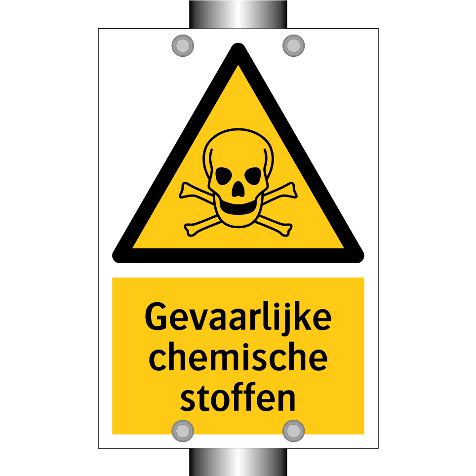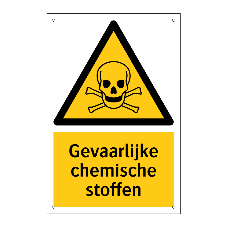 Waarschuwingsbord met de tekst Gevaarlijke chemische stoffen