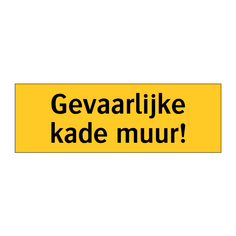 Deze waarschuwingsbord is essentieel voor het markeren van gevaarlijke kademuren. Ideaal voor gebruik in havens, dokken en industriële gebieden waar verhoogde waakzaamheid vereist is. Plaats deze bord op strategische locaties om voorbijgangers en werknemers te waarschuwen voor potentieel gevaarlijke situaties. De opvallende gele achtergrond en zwarte tekst zorgen voor maximale zichtbaarheid, zelfs van een afstand. Dit waarschuwingsbord helpt ongelukken te voorkomen door duidelijk te communiceren dat de kademuur gevaarlijk is. Perfect voor zowel binnen- als buitenomgevingen waar veiligheid prioriteit heeft.