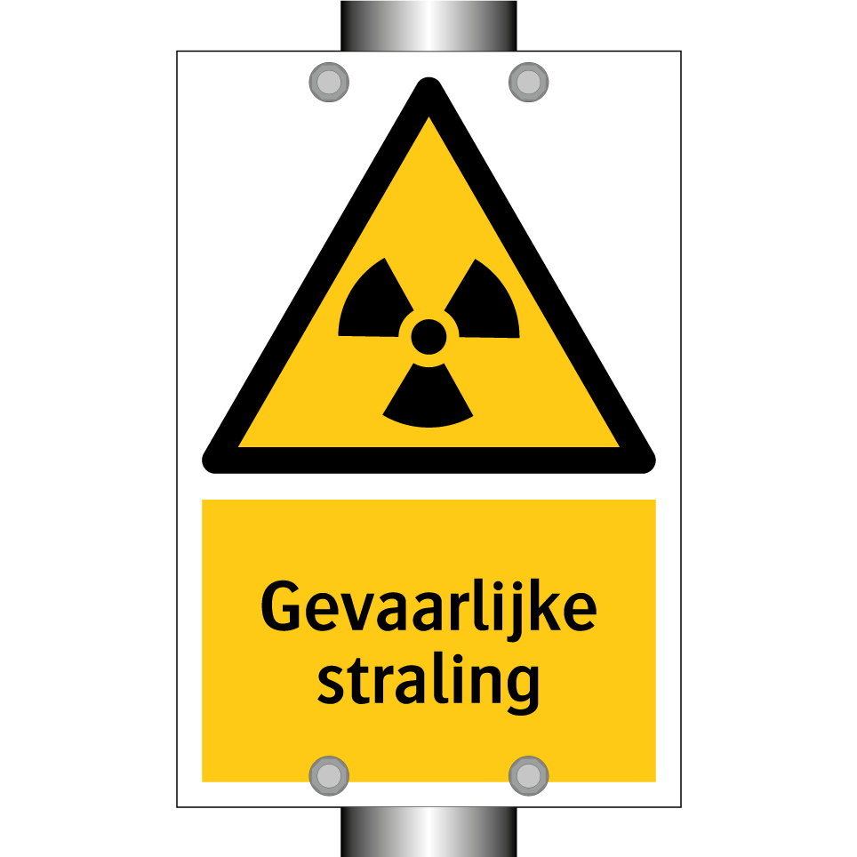 Waarschuwingsbord met de tekst Gevaarlijke straling