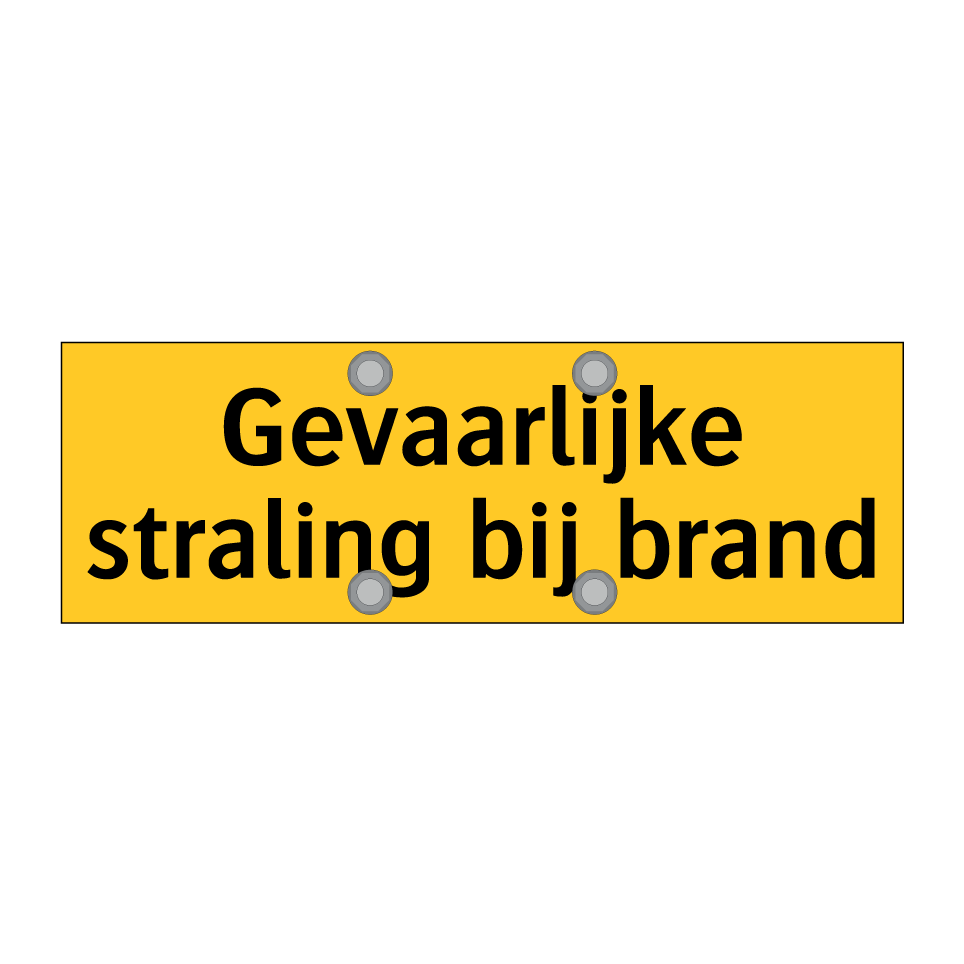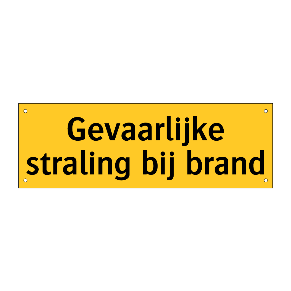 Waarschuwingsbord met de tekst Gevaarlijke straling bij brand