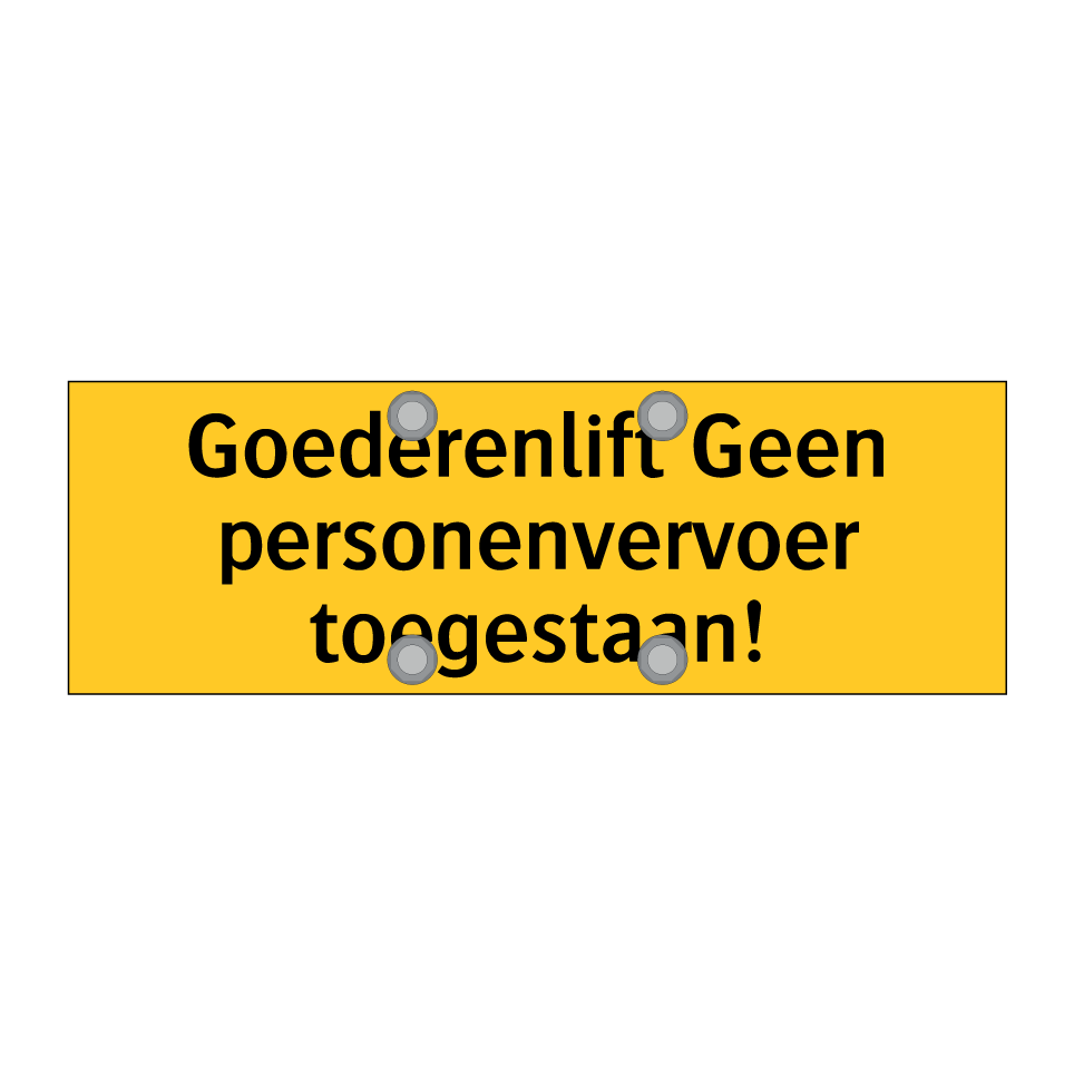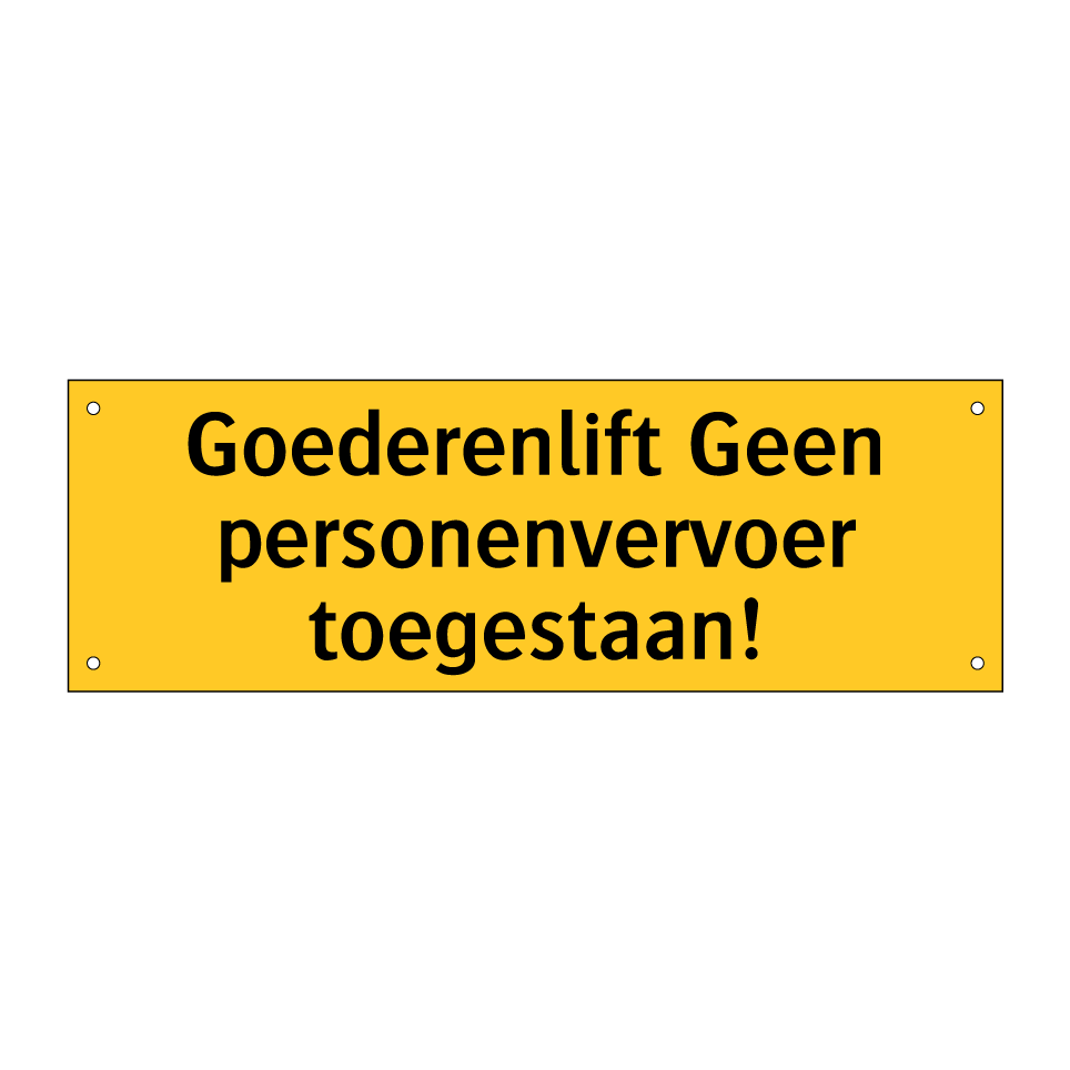 Waarschuwingsbord met de tekst Goederenlift Geen personenvervoer toegestaan!